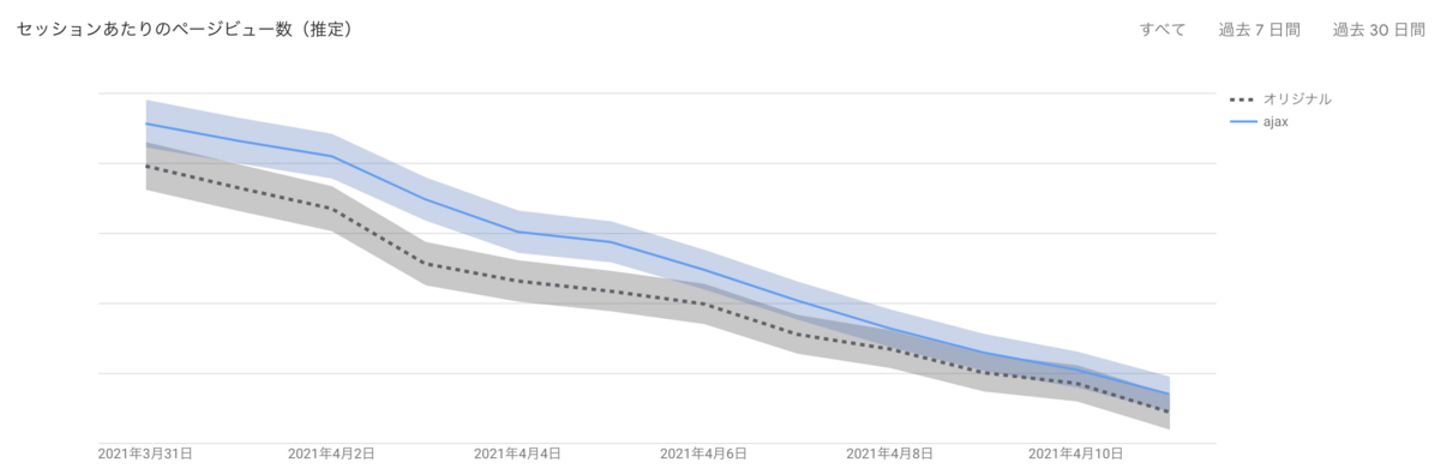ABテスト結果でページビュー数、セッション時間、直帰率等が悪化していないことを確認できました!