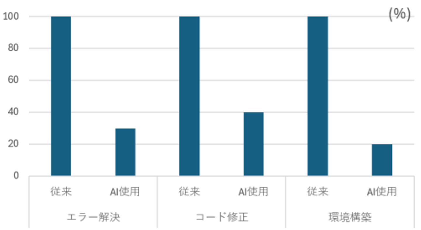 AI駆動開発は、開発効率を向上に寄与し、開発工数や問題解決に要する時間の削減といった効果をもたらします。