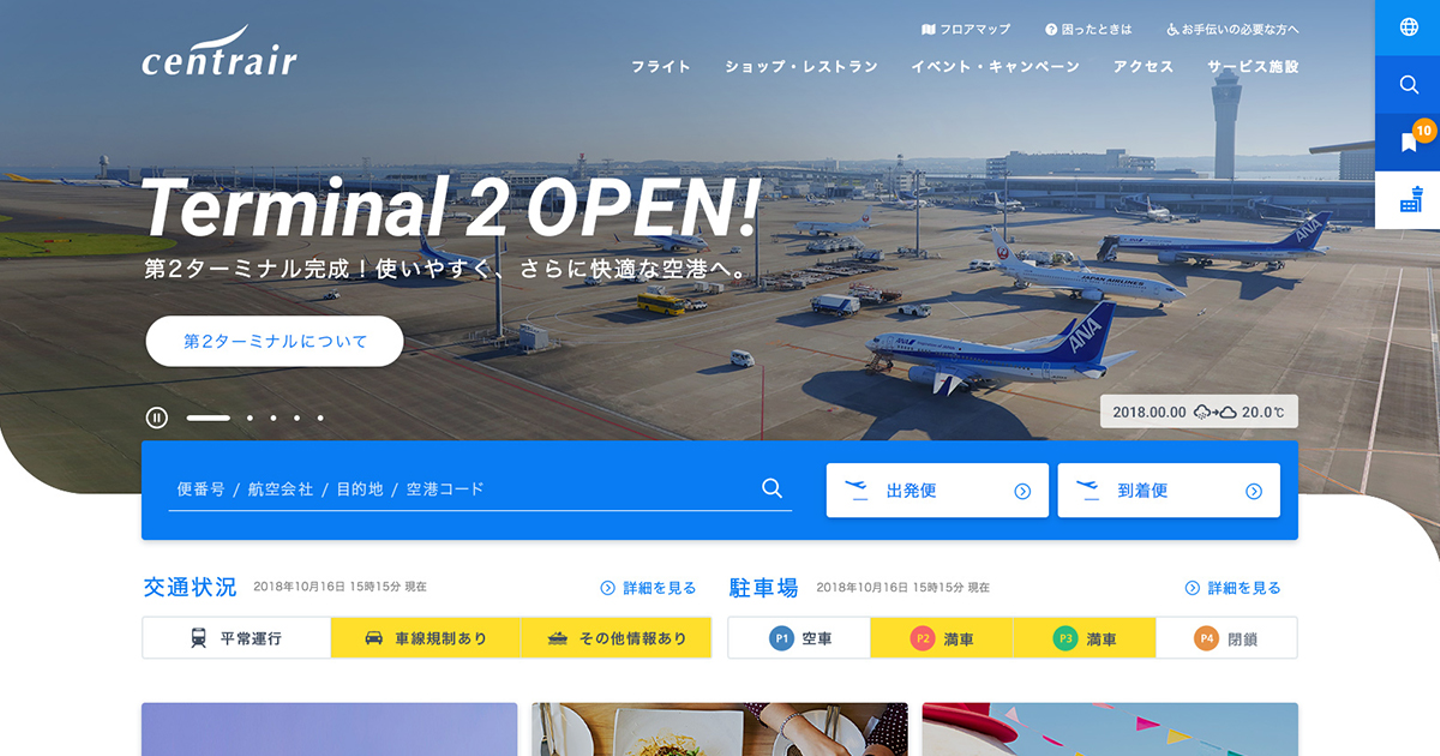2005年の開港以来、日本の中心にある空の玄関として発展を遂げてきた中部国際空港セントレア様。空港利用者に寄り添うサービスや施設が評価され、SKYTRAX社※最高位の格付け「5スターエアポート」に認定されています。