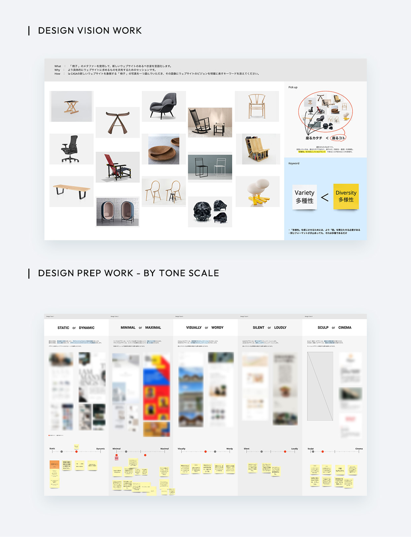 主観と客観、双方の見方を行き来しながら、コミュニケーションフローやコンテンツアイデア、サイト構成に繋げています。
