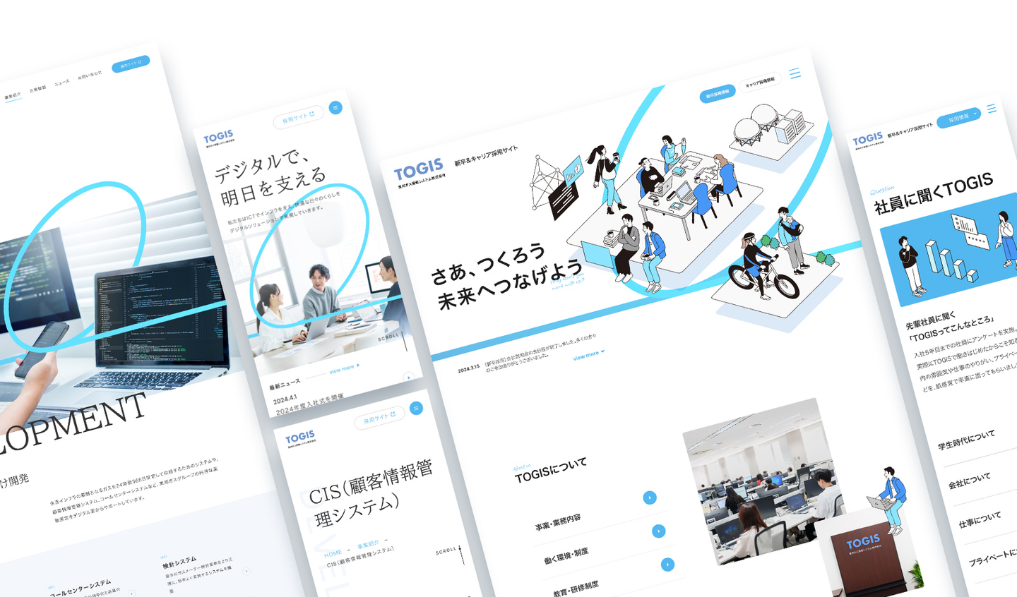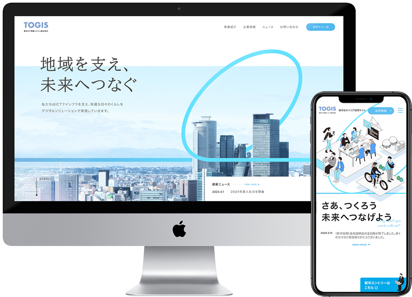 東邦ガスグループの一員として、デジタルの力で生活インフラを支える東邦ガス情報システム株式会社(以下、TOGIS) 。 Webサイトを閲覧したステークホルダーに対し、「信頼・安定」「将来性・成長」というイメージを醸成することを目指しました。一般企業からのお問い合わせや、求職者の志望度向上に繋げるため、採用サイト、コーポレートサイトの全面リニューアルを行いました。