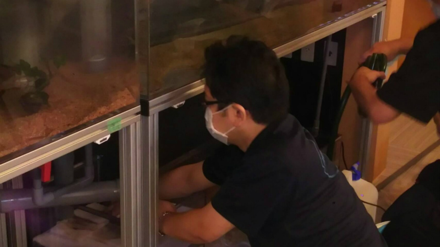 先日、TOJO本部スタッフ松久保が岩手県の加盟者様『ヒーリングアクアリウムT3』高田さんの水槽設置のお手伝いに行って来ました(˘︶˘)