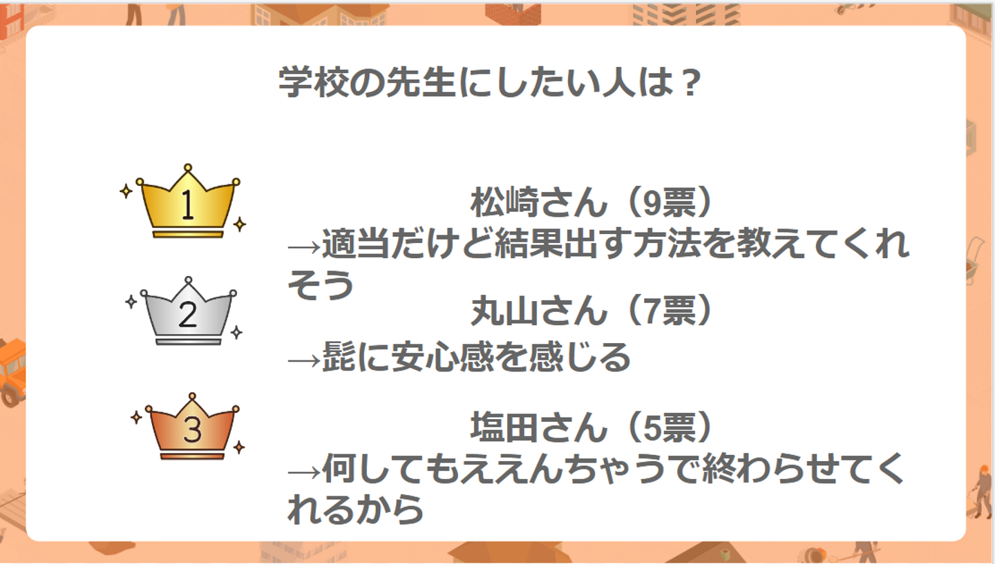 「新入社員編」と「ベテラン社員編(とはいえ1~4年くらいw)」に分かれてランキングを発表していきました!