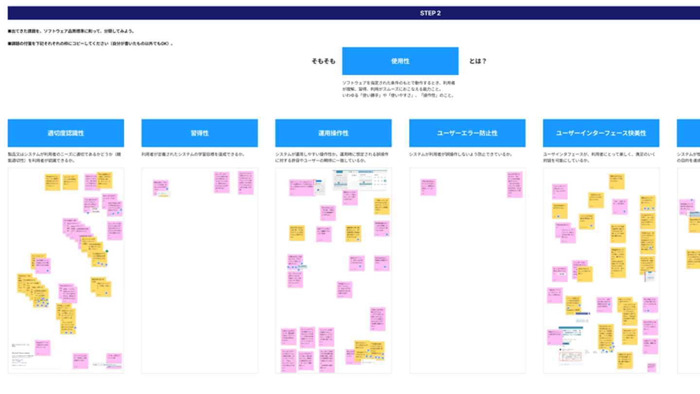 FigJam(オンラインホワイトボードツール)を利用してワークショップを開催しています。リモートワークでも社内外のメンバーとコラボレーションする練習や、人間中心設計(※)に欠かせない評価工程について真剣に考えるきっかけづくりをすることが企画の趣旨です。なによりも「みんなでワイワイ共同作業をしたい」と思っていたんですよね。