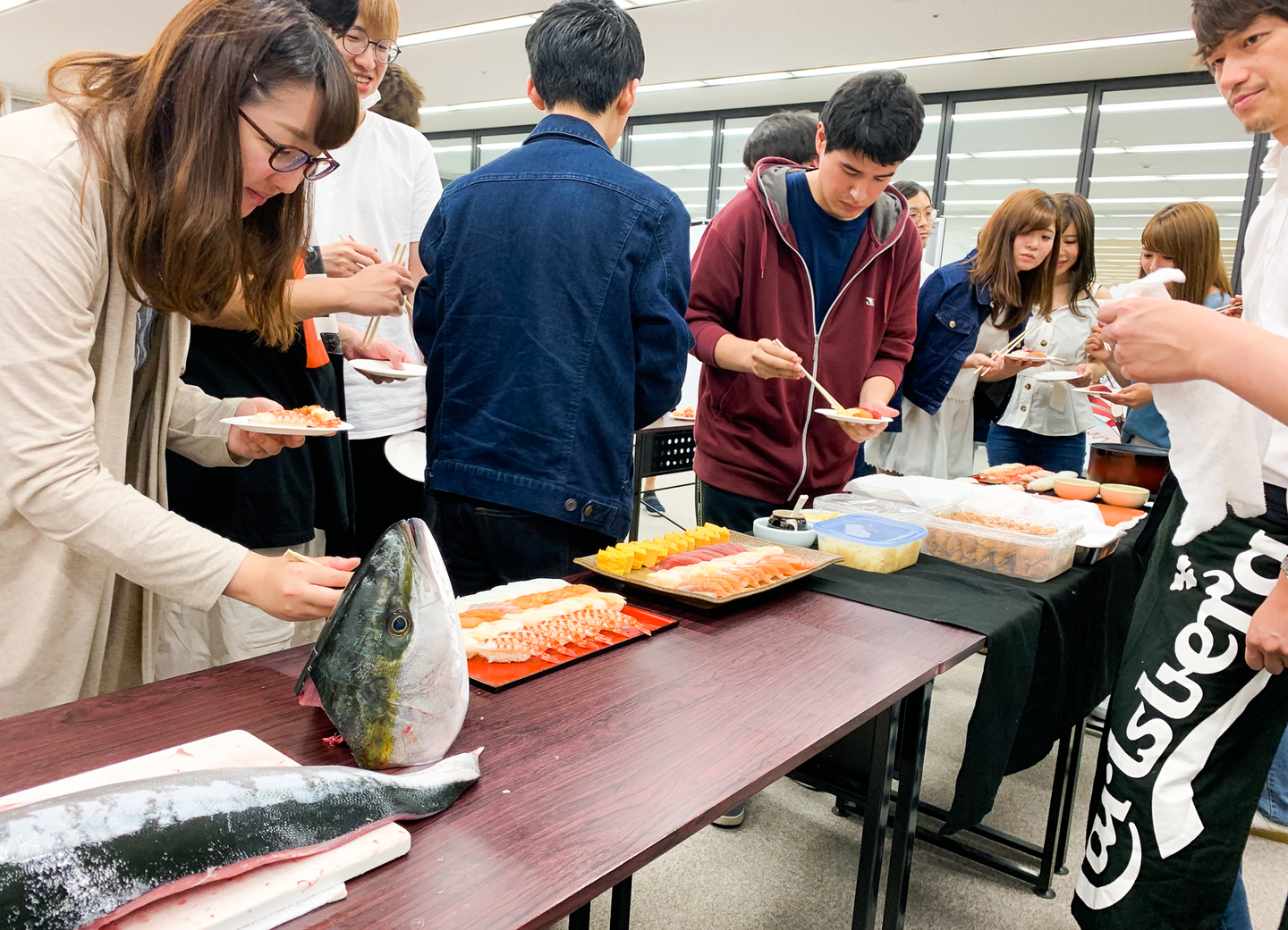 (社内で解体ショー!お寿司をみんなで堪能しました!)