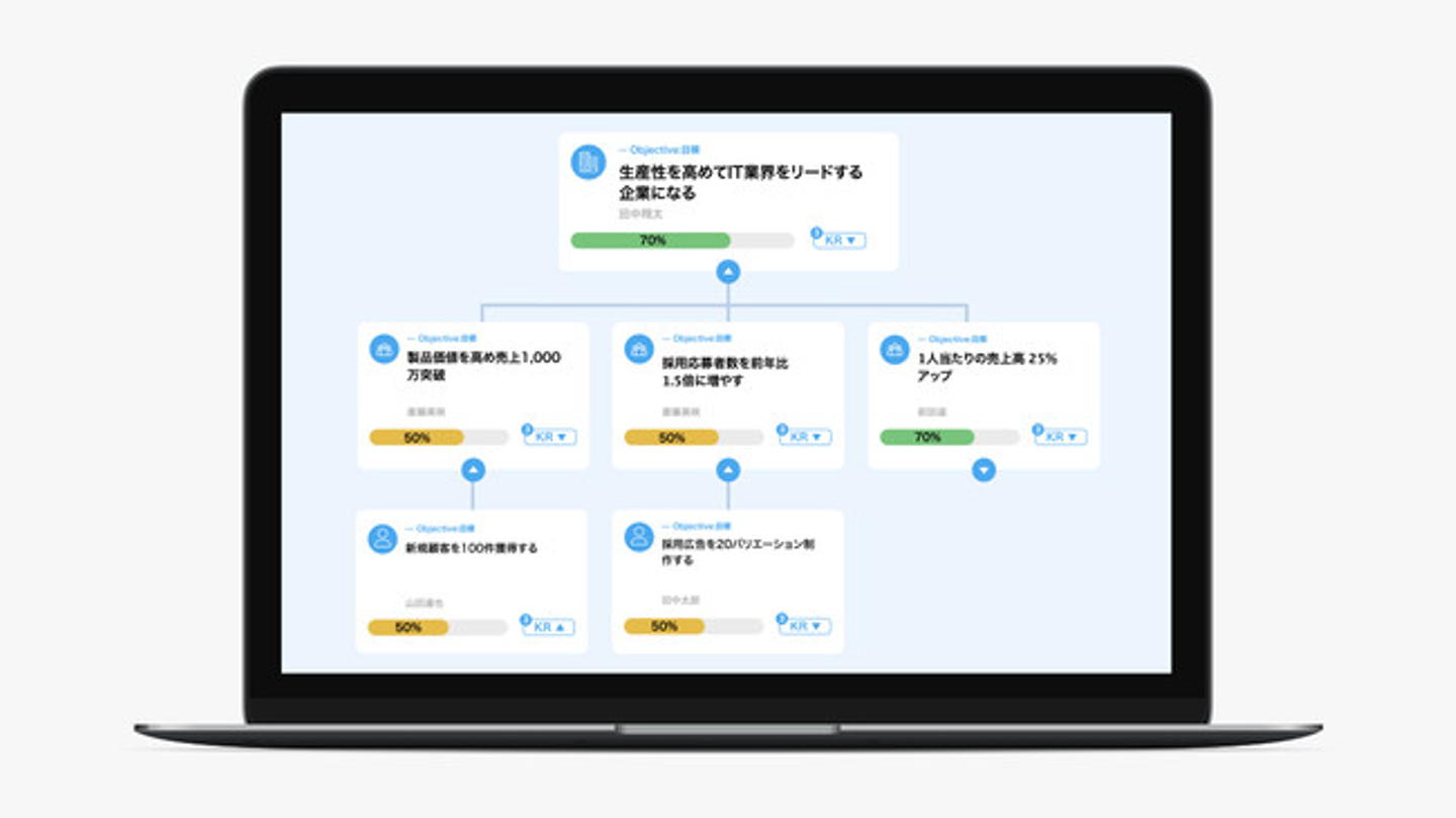 会社の目標をもとにチームや個人の目標を設定することで、会社の組織全体で共通の目標を持ち、高い目標意識の中で業務やコミュニケーションをおこなうことができます。