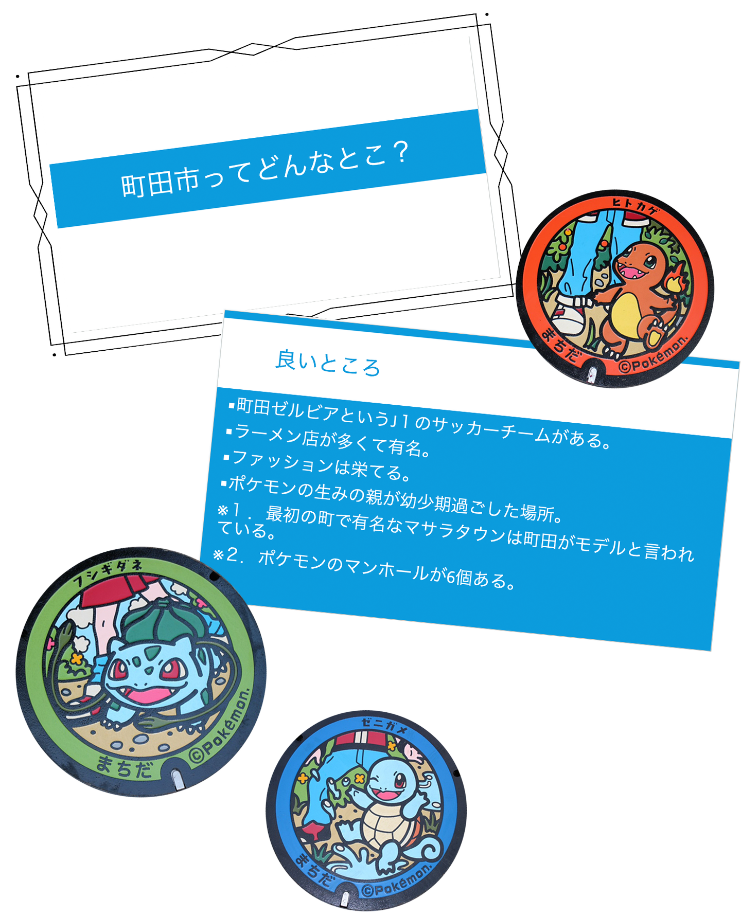 町田市にはポケモンのマンホールがあるということですが、弊社はポケカ好きの社員が大変多いので、来年の社員旅行は町田でマンホールめぐりを・・・(ごめんなさい、嘘です。)