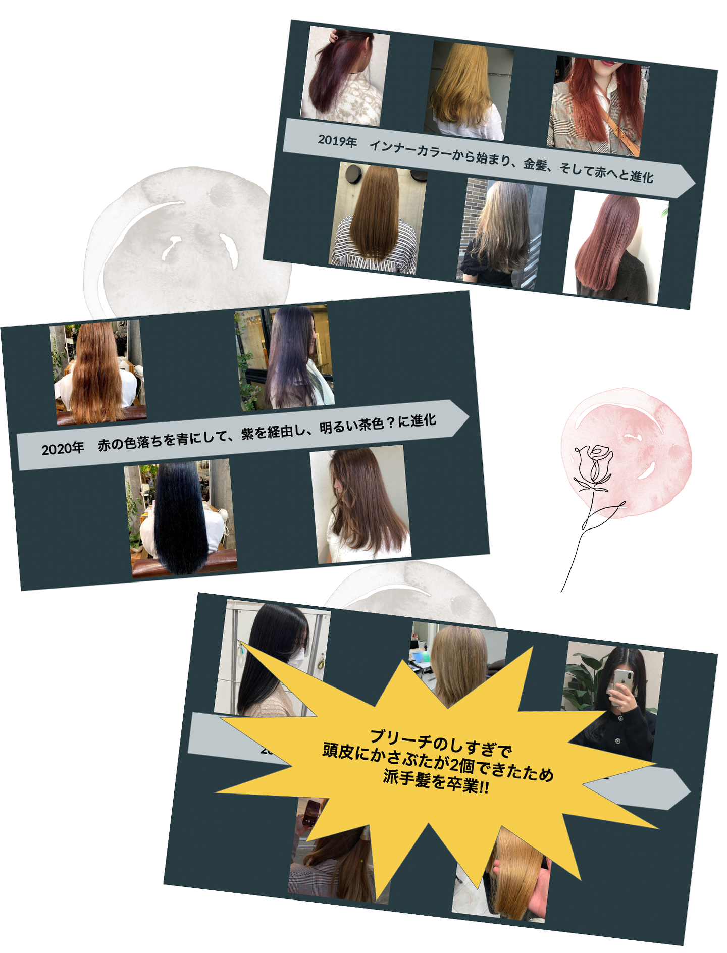 今は全然派手髪チャレンジしていないそうですが、私の金髪を見て、