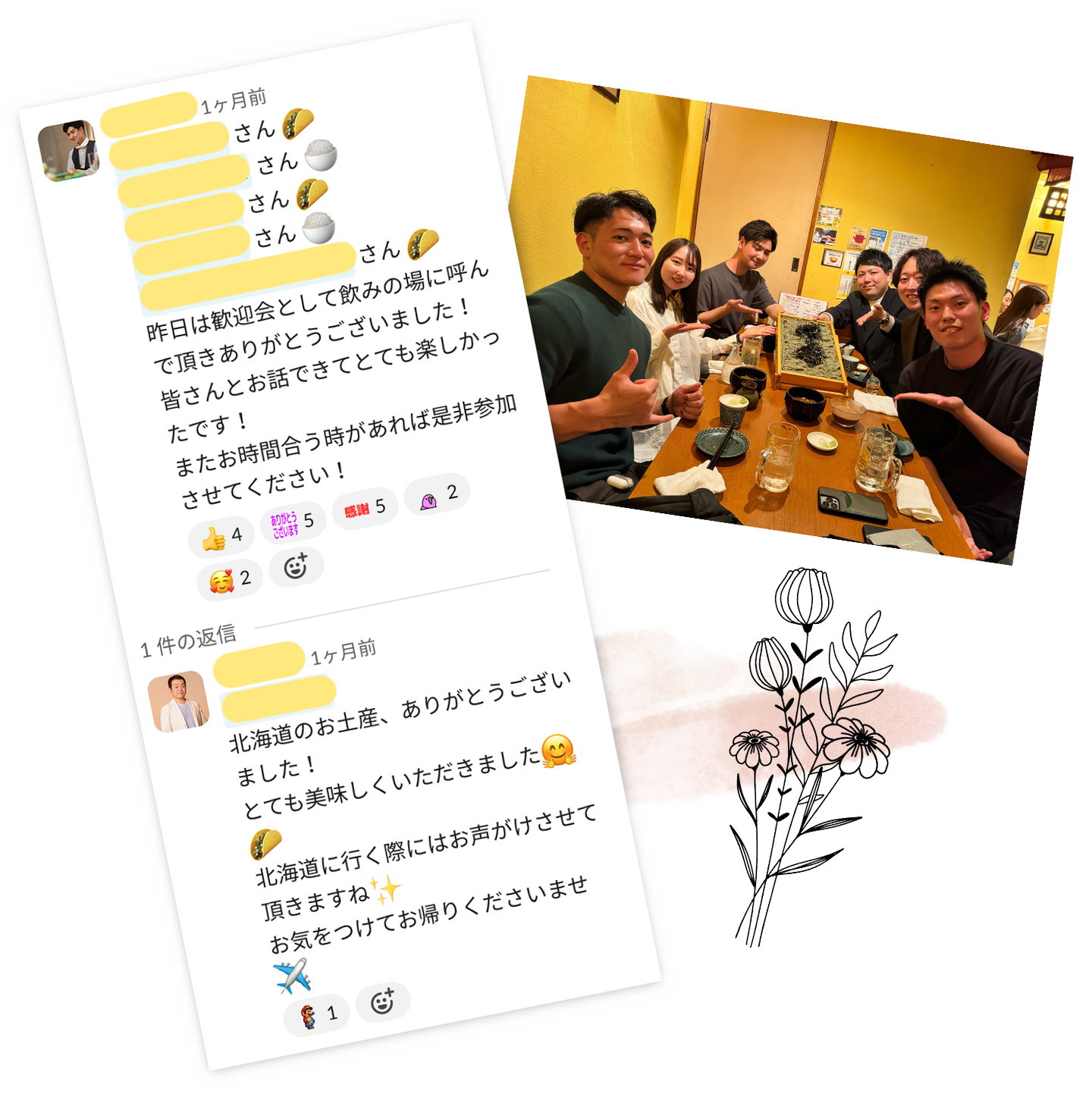 こちら、最近ご入社された地方在住エンジニアさんが営業部のメンバーへお礼を伝えているメッセージ✉️