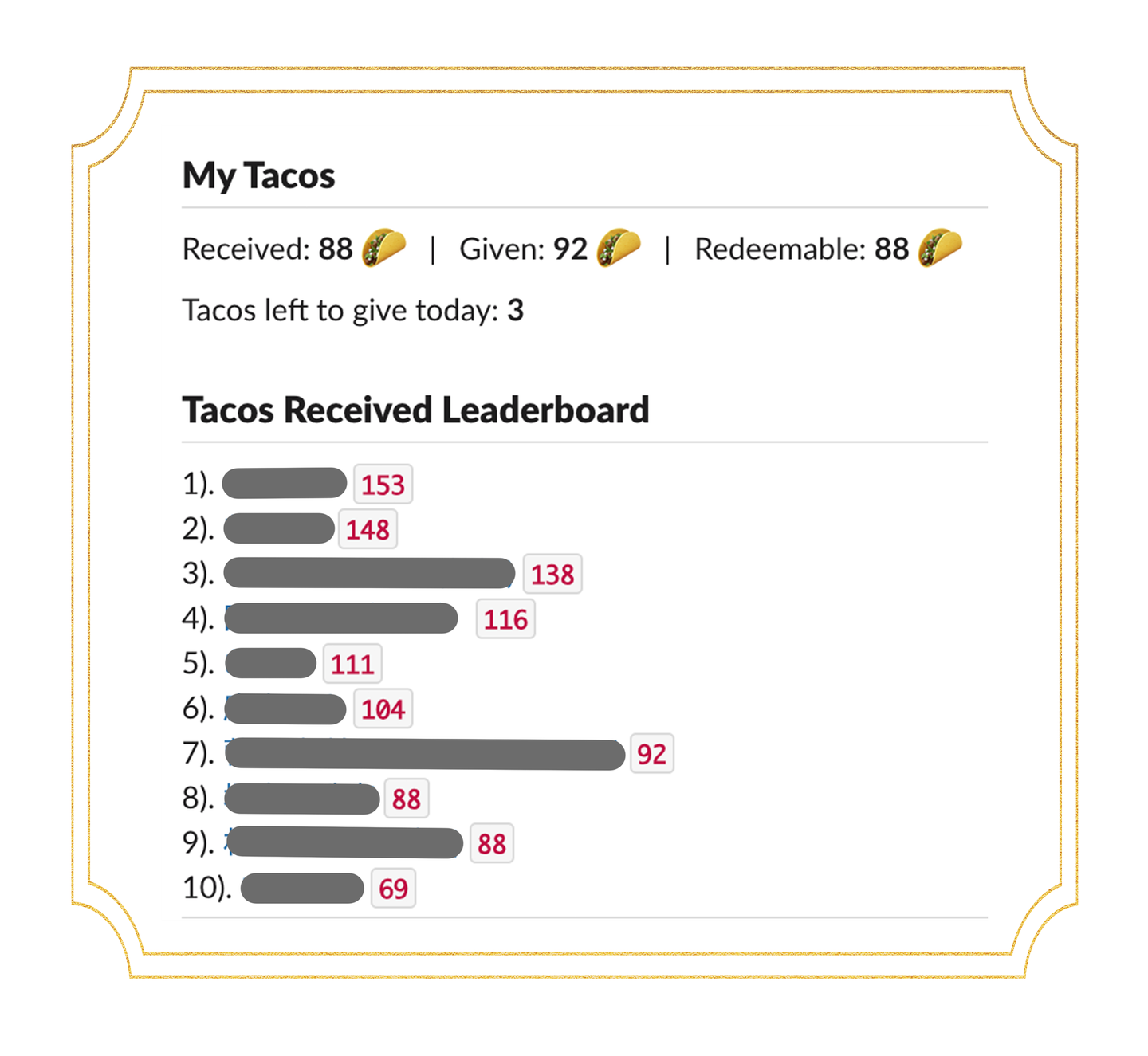 タコスがついたメッセージは自動カウントされるため、プチご褒美(ボーナス)と連動させて