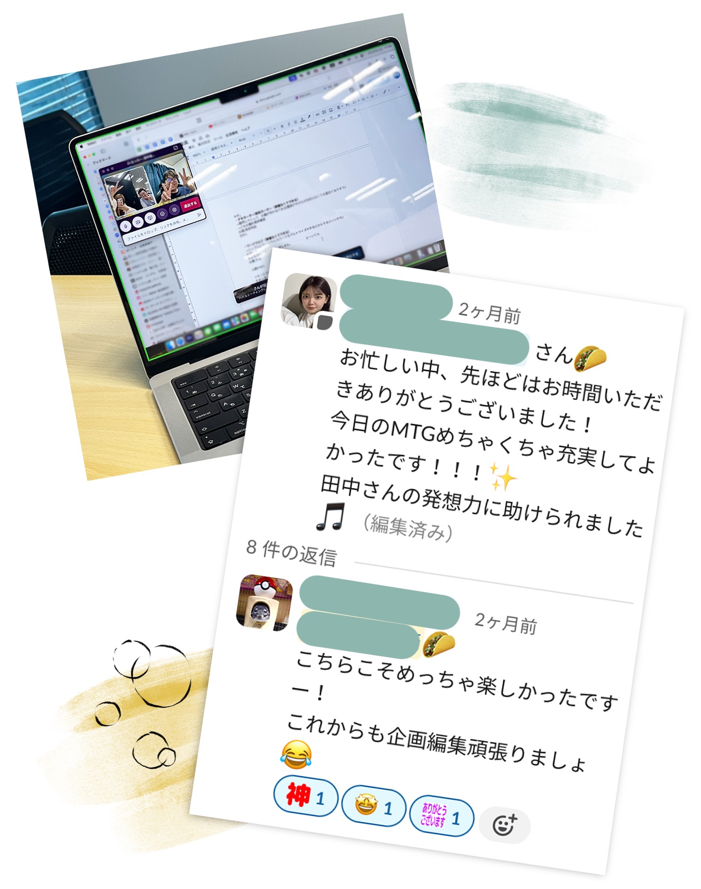 ワクワクしながら働けるっていいな。と、もちさんと話すたびに感じることができます。
