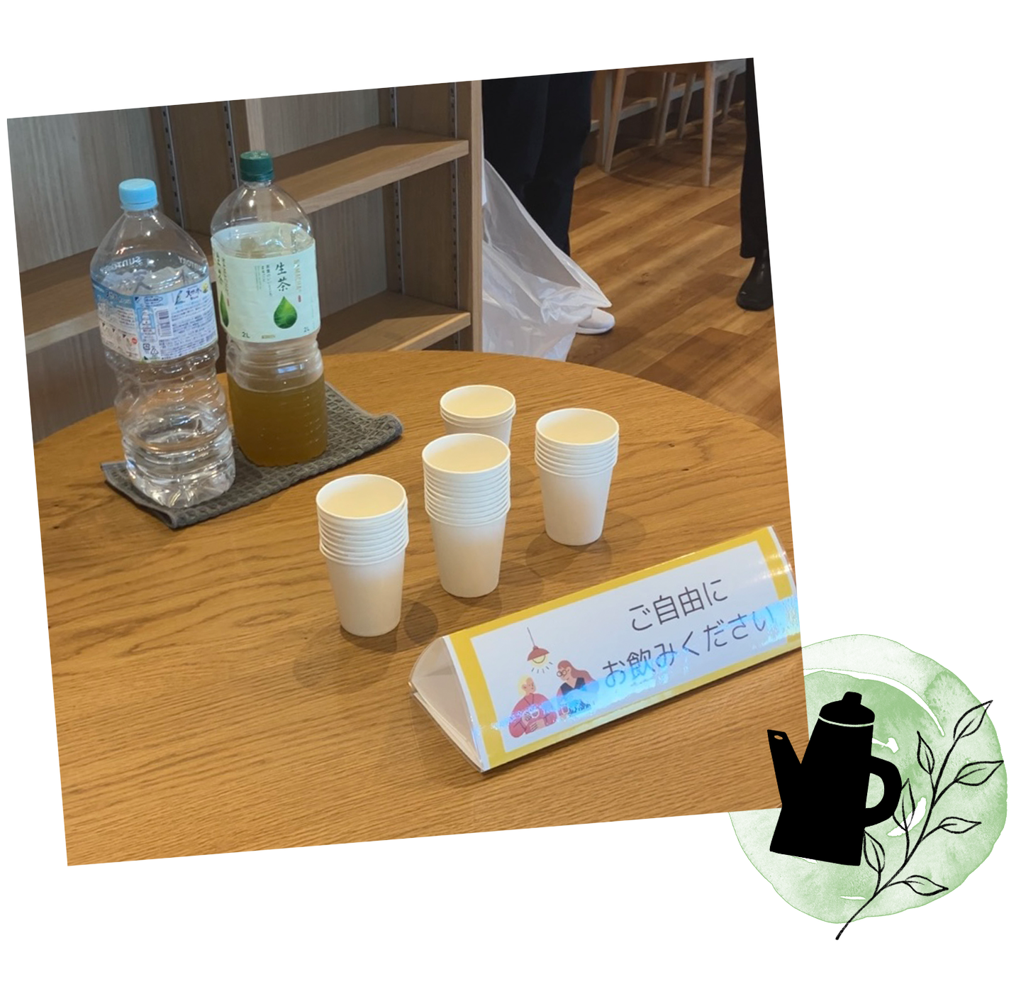 また、ご来場いただいた方には、お水とお茶をご用意しております。