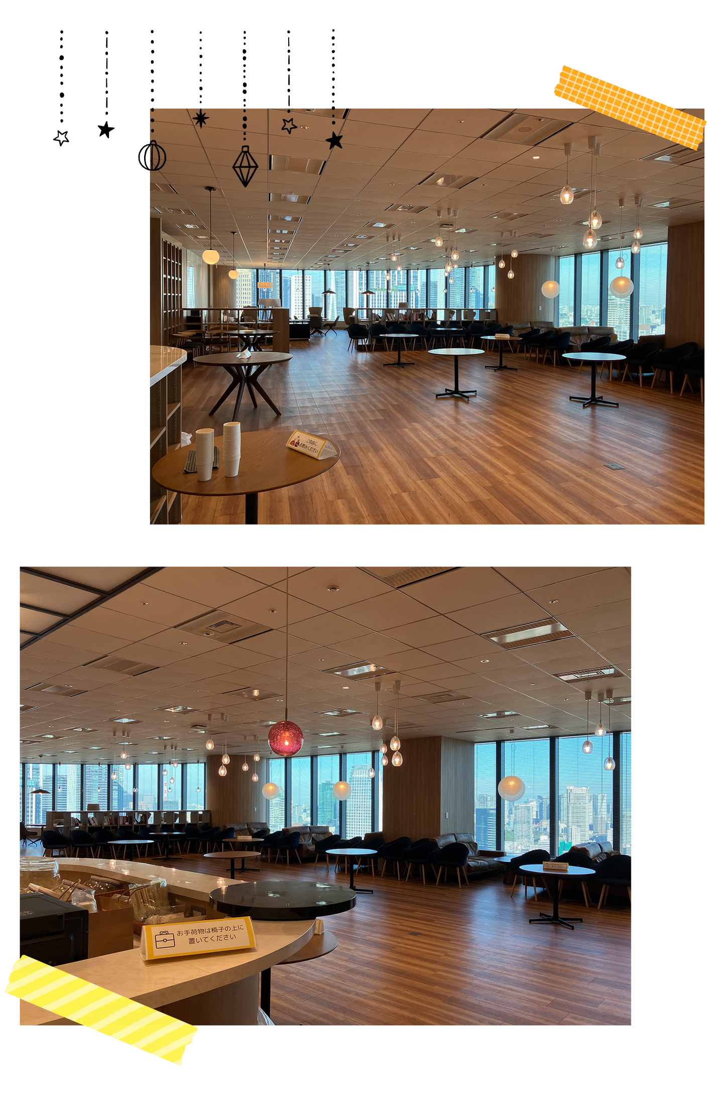 広々とした空間を囲む大きな窓からは、青空が広がり、東京の町がとてもよく見えます✨