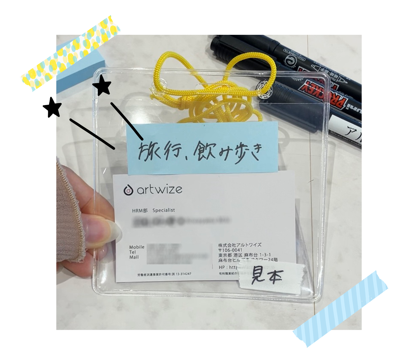 意図としては、名刺交換時にお相手の趣味を共感することで、より深いコミュニケーションを行い、