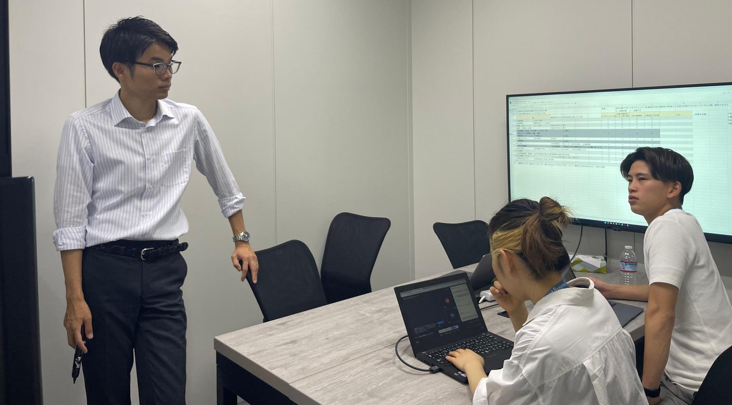 大森:今からインターナルプロジェクトの会議に出席します。このプロジェクトは、廣瀬専務を始めとする5人のメンバーで進めています。僕自身もメンバーとして、今後の方針や挑戦したいことについて意見を出します。入社3ヶ月目の僕でも遠慮せずに意見が言える環境です。