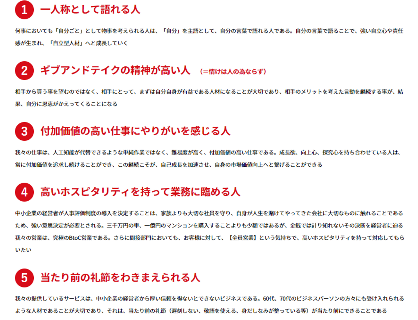 面接を進めて行く過程で役員、部長、MGRの皆さんにお時間を頂き、「人事評価制度」という事業内容について、また、会社のビジョンや今後の方向性について深く質問をしました。
