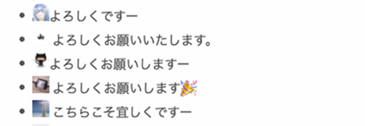 ちなみに社内でのMTGでは以下のように文章の冒頭にアイコン画像を入れて、誰の発言か分かるようにしていることもありました。