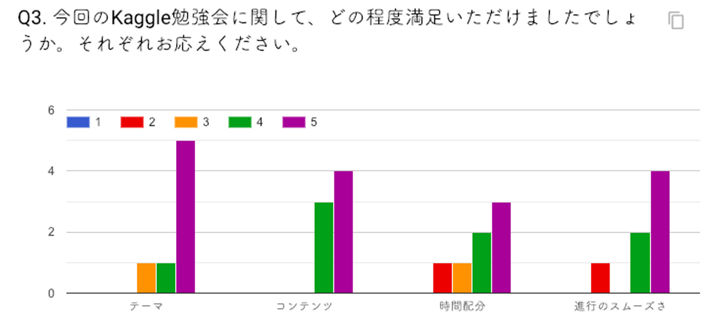 そして今回のKaggle勉強会 終了後のアンケート結果がこちらです。