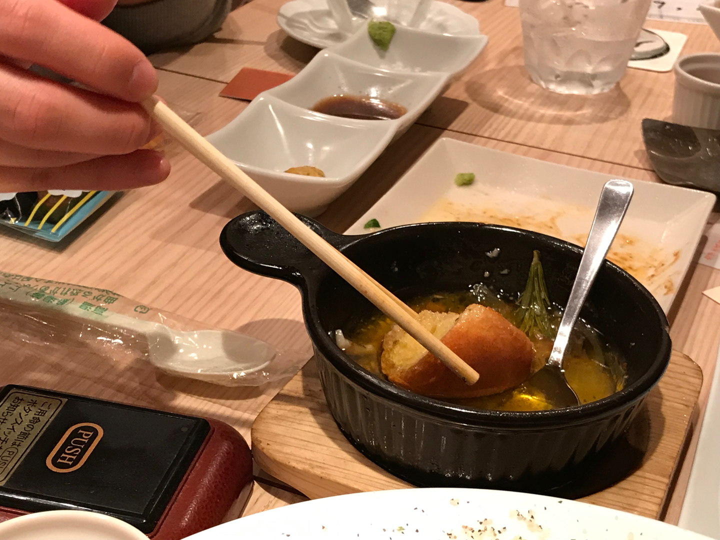これはみんな遠慮し合って誰も食べてなかったアヒージョのパン🥖