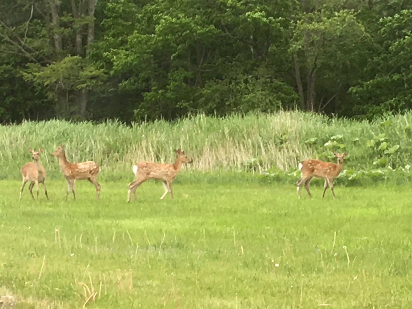 大自然の中にある学校ならではの写真。これは駐車場にいた鹿だそう。可愛すぎて全員まとめて育てたい。