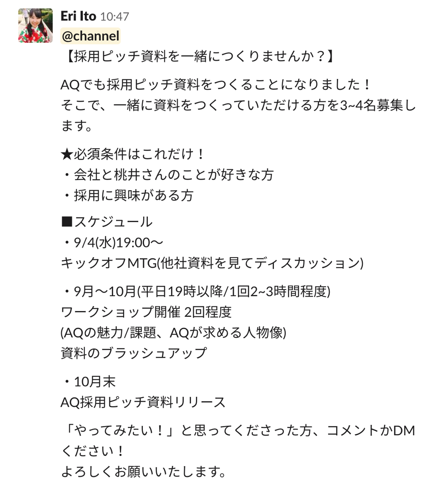 インドネシア(AQI)に採用ピッチができたよって連絡したら