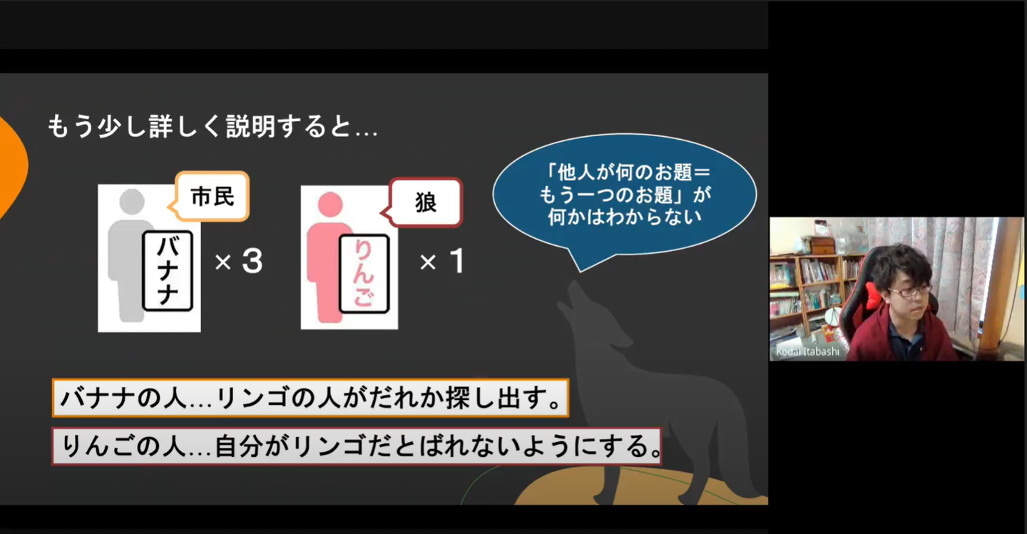 実際に説明している様子なのですが、スライド1枚で概要を説明できるぐらい簡単なゲームなのです。