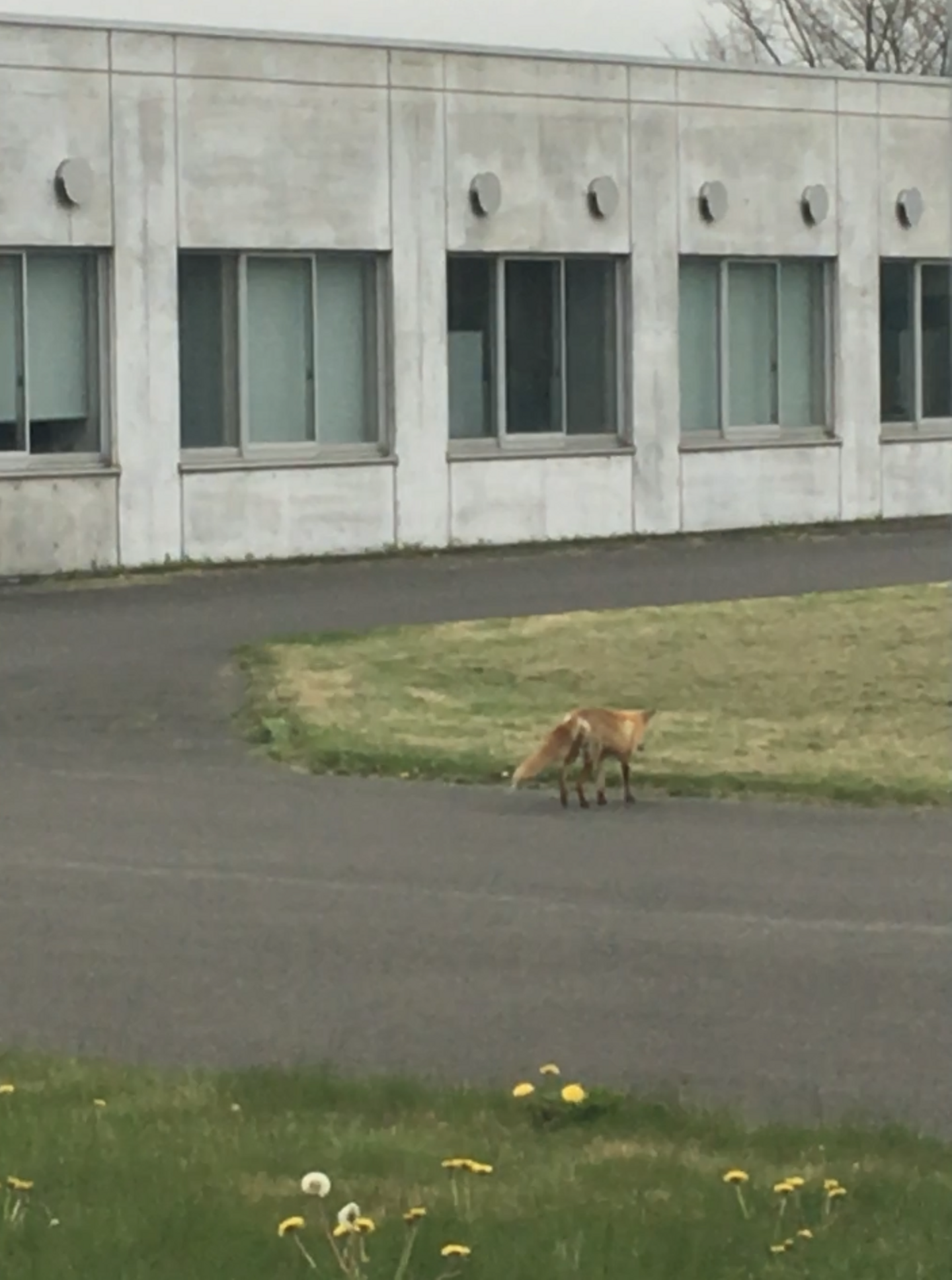 ↑ 学校敷地内を闊歩するキツネ