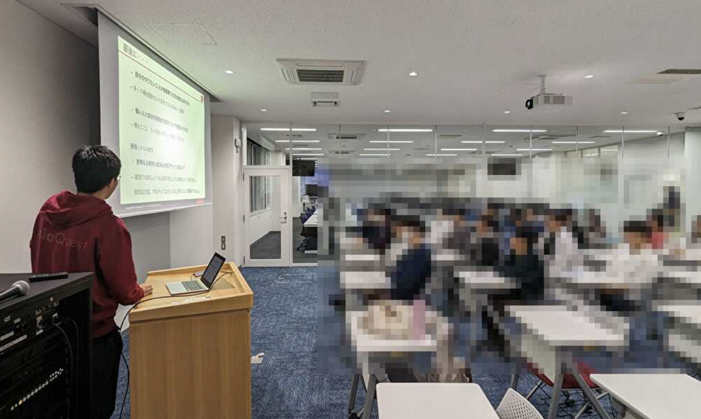 また、私が卒業した研究室では、他の大学などで実際に使われているシステムの開発をやっていたり、インフラ系(オンプレのサーバーで TCP/IP レイヤーの通信実験など)をやっていたり、AIに関する研究をやっていたりなど、多岐にわたることをやっています。(こういう部分はアジアクエストに似ているかもしれません笑)