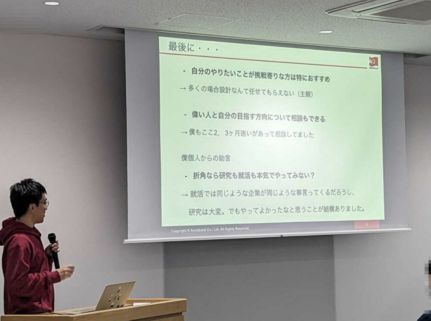 今後も機会があれば、よりアジアクエストの事を知った上で会社説明がしたいですね!