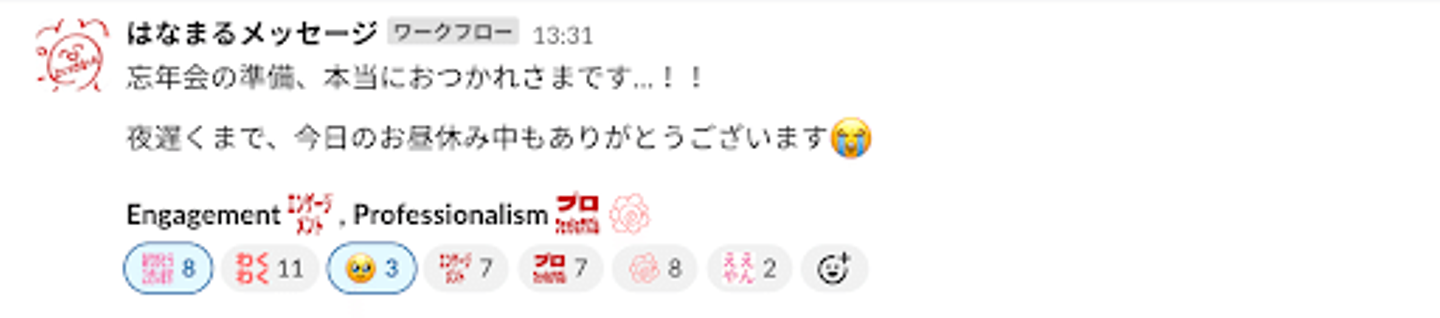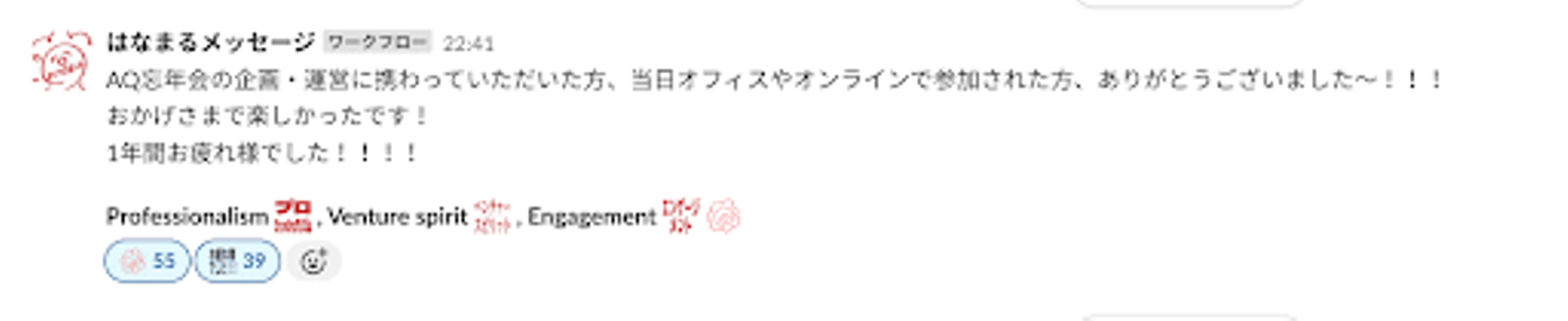 ※はなまるメッセージとは、社内のSlackチャンネル内で感謝や成長を伝えるための仕組みです。