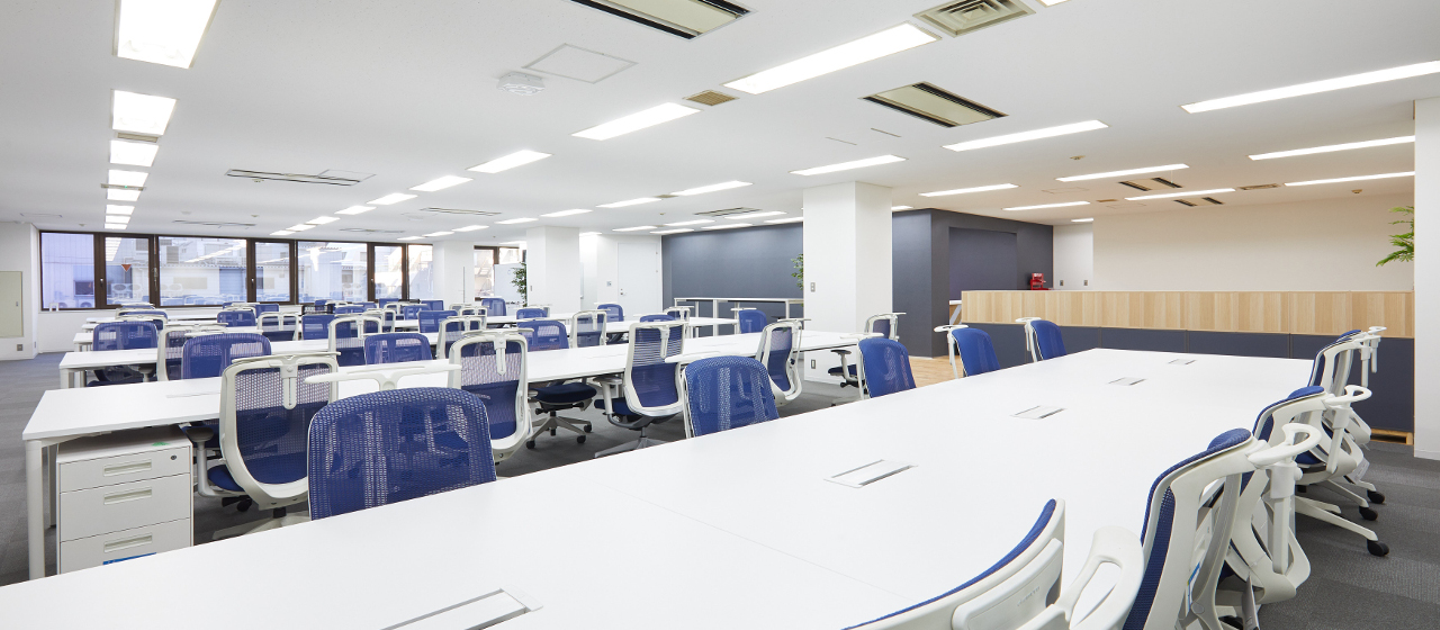 執務スペースは機能性を重視し、明るく開放感のある設えとしております。一緒に働く仲間やオフィス全体が見渡せてコミュニケーションが取りやすい環境となっています。