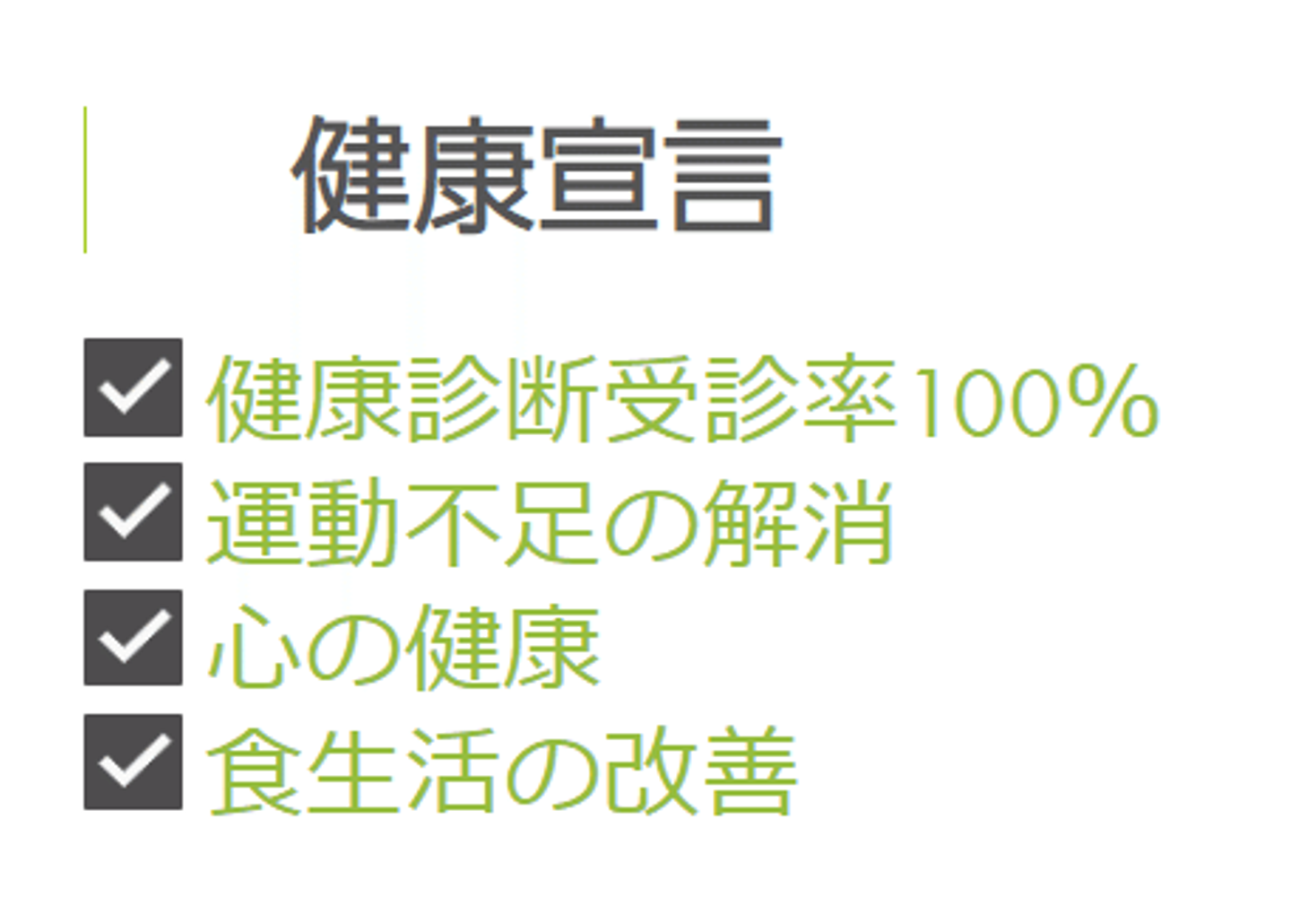 上記の健康宣言を掲げ、従業員一人ひとりが健康で充実した生活を送り、最大限のパフォーマンスを発揮できる環境づくりを目指しています。先日紹介したりんご🍏ルームの取り組みもこの施策の一つですね!