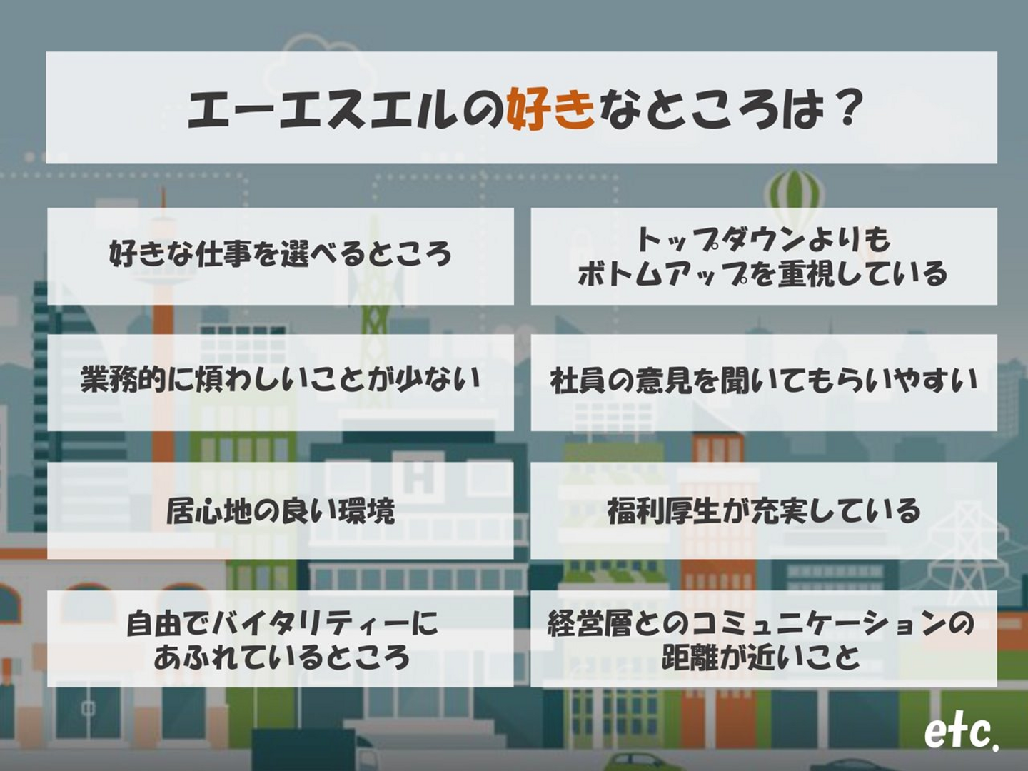 同じ調査で、「エーエスエルの好きなところは?」という質問もしてみました。