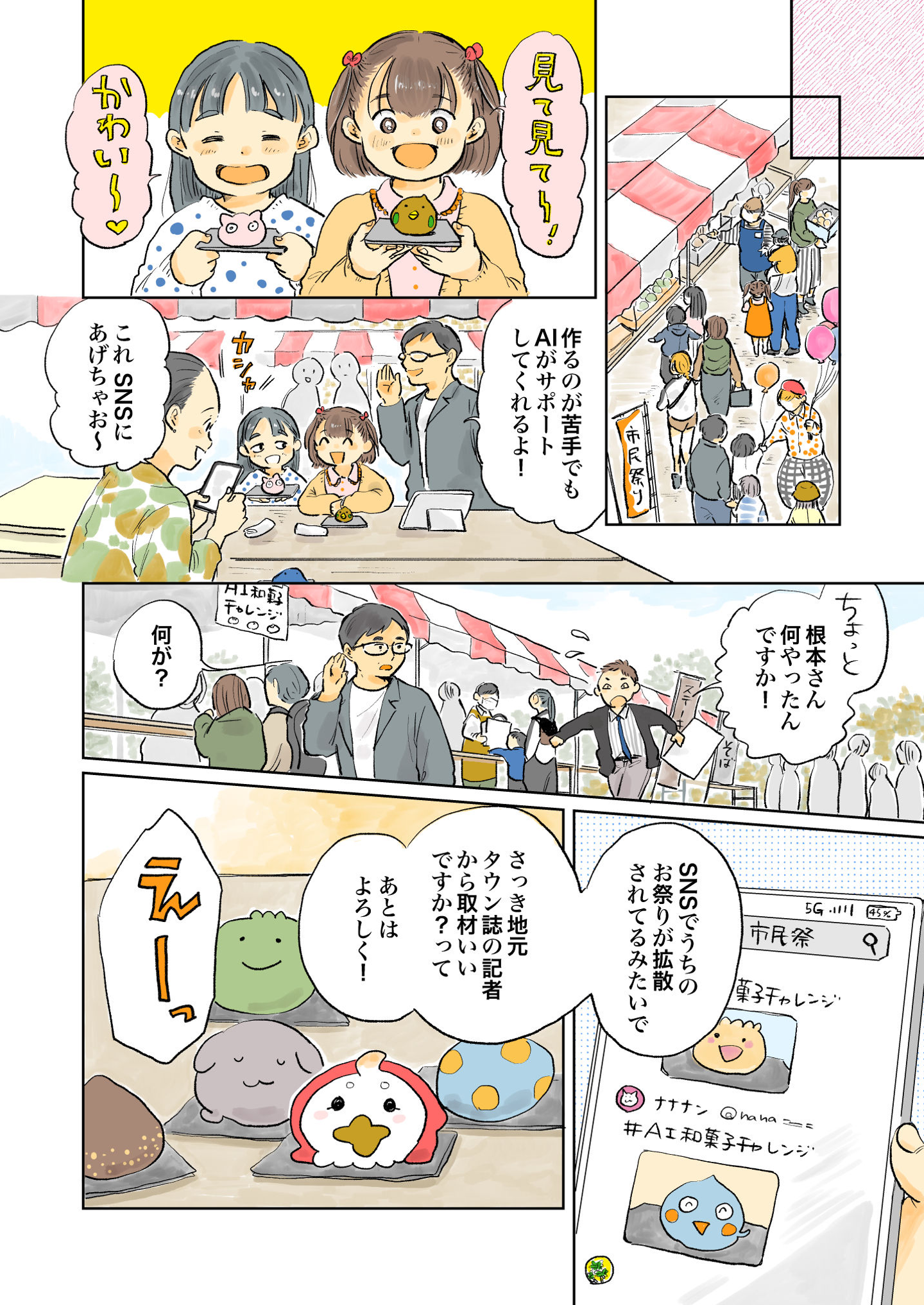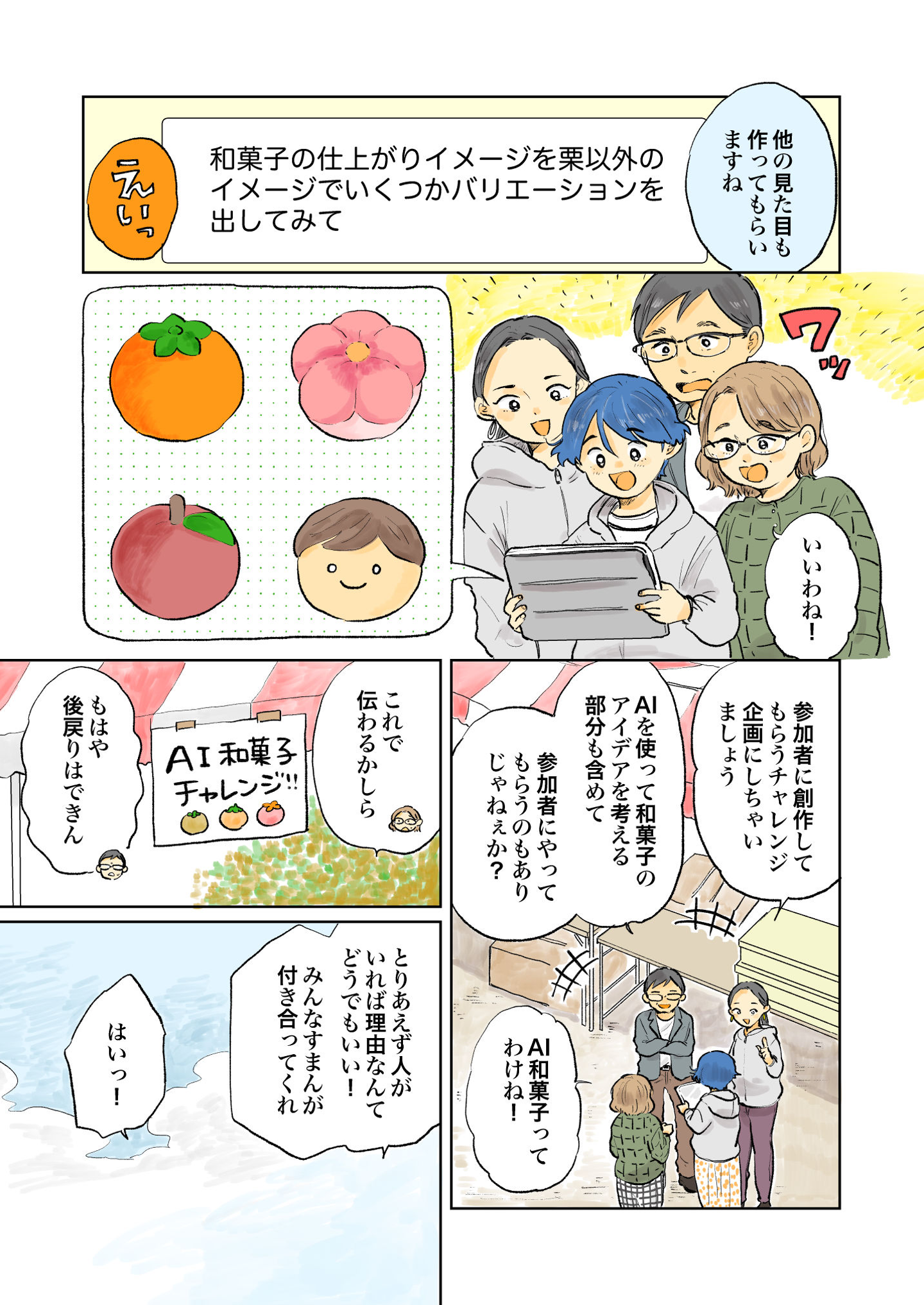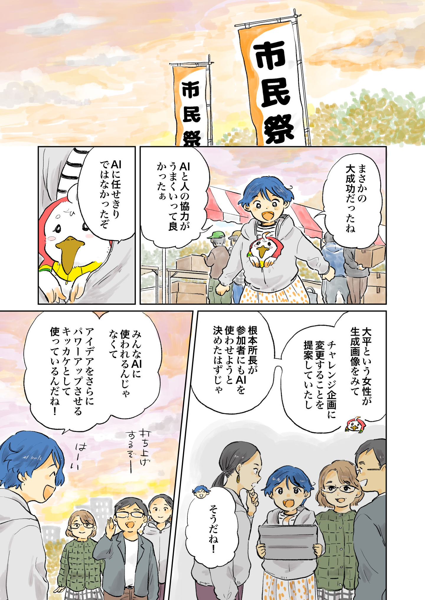 手順や利用例の画像を見て、自分たちで作るだけではなく来場者に作ってもらおうという発想は、画像生成を使っていると言うより相談相手として使っているような意識じゃろうか。出力結果をそのまま使ったり、重箱の隅をつつくようなネガティブな反応をするのではなく、新たなアイデアの源泉にしているところは見習いたいところじゃな。