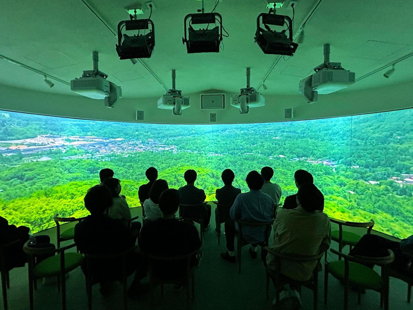 次にハーフムーンシアターについては、大画面で映像を見たときの「没入感」を大事にしています。社員だけでなくお招きしたお客様にも、アステリアの取り組みを紹介するビデオをお披露目しているのですが、没入感のある映像体験を通じて、アステリアのことをより深く知ってほしいという想いがあります。