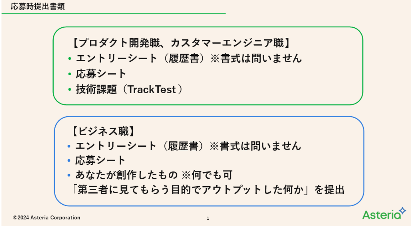 アステリアは、自分の考えやアイデアのアウトプットを大切にする企業です。ですからこうした価値観に共感してもらえるか、ひいてはアステリアにマッチしているかを判断するために「創作物」の提出をお願いしています。