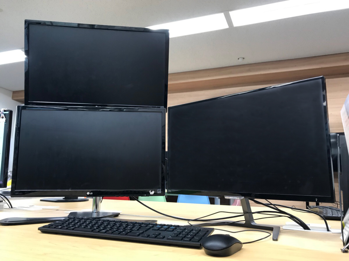 面接に来られた方や来社された方が驚くのが、一人一人のディスプレイの数です。