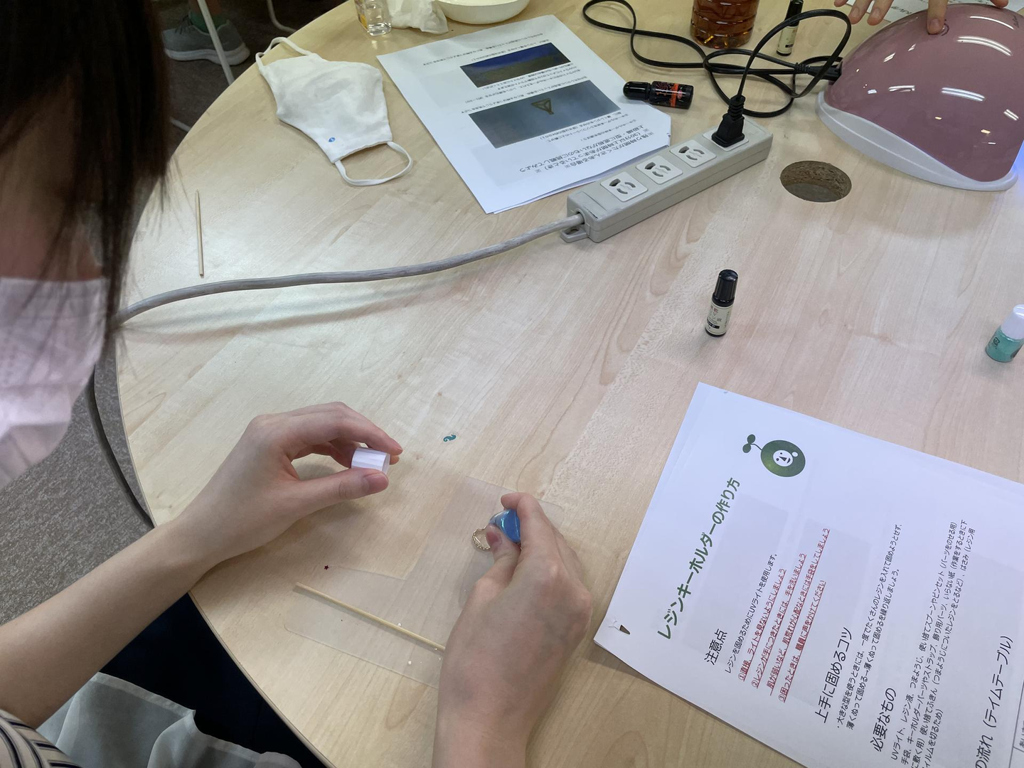 生徒と一緒にレジンを使ってアクセサリー作りに挑戦をしました!