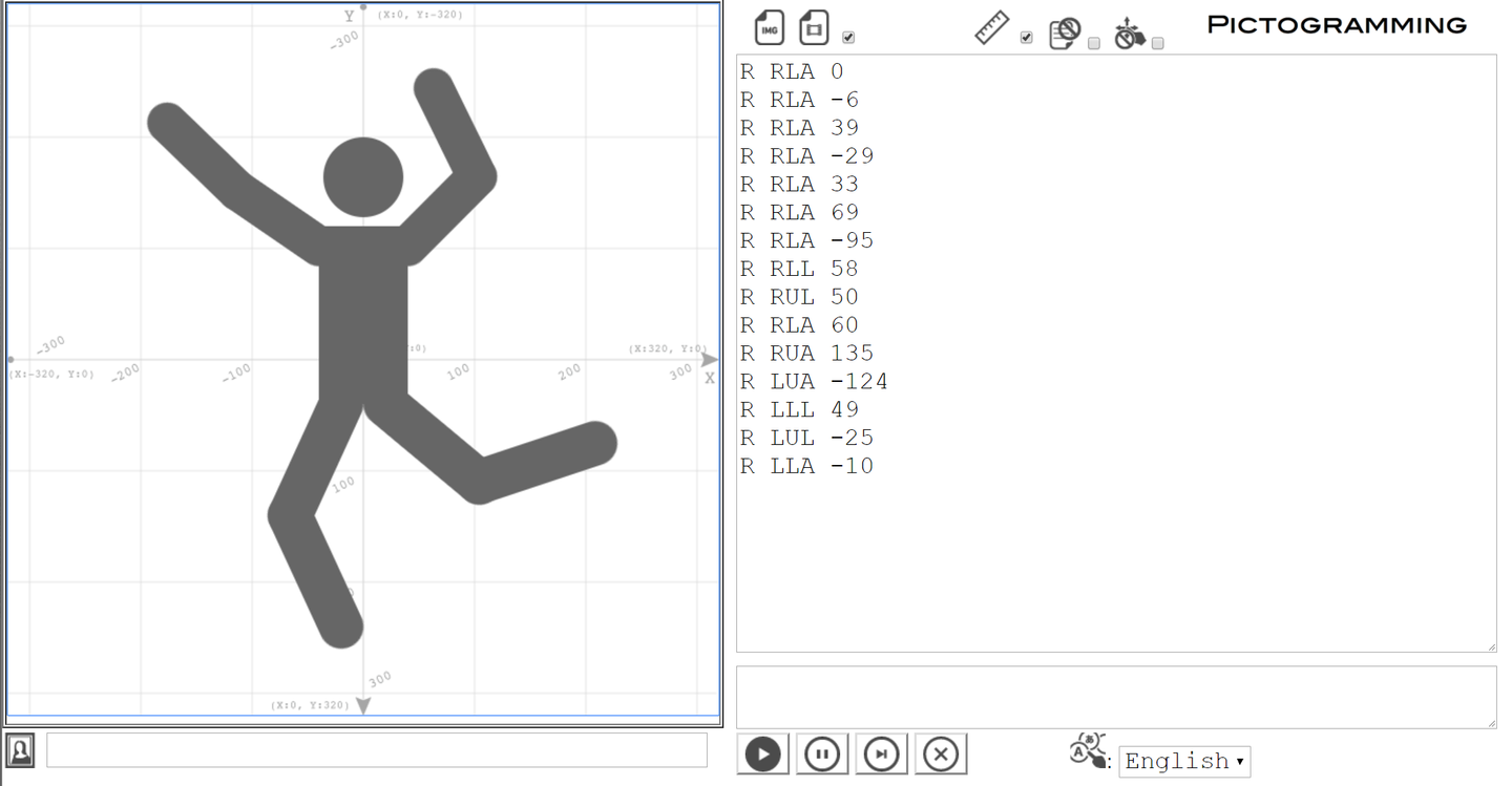 これにアニメーションやら、描画を加えてじぶんだけのピクトグラムを作りましょうということのようです。確かに、制約下(人の身体を用いる)にある方が考えることはしやすいし、あとは1つずつ動きを覚えていけばいいので、弊社が昔実験したテクグラで用いたスクラッチ(Scratch)よりは扱いやすいように感じます。