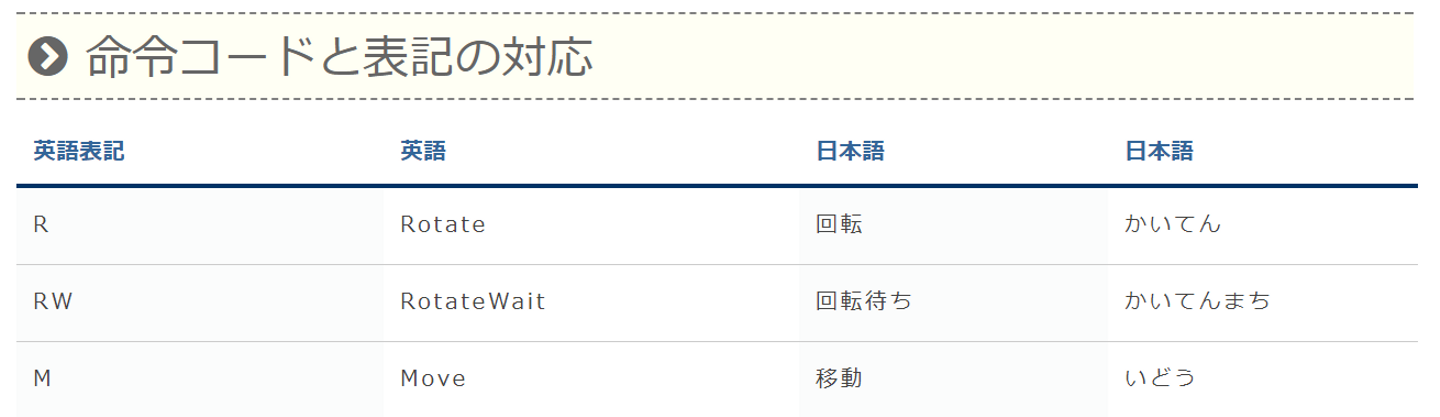 こんな感じで、命令コードと意味付けの資料もあるので、教育用として導入しやすくなってるね。