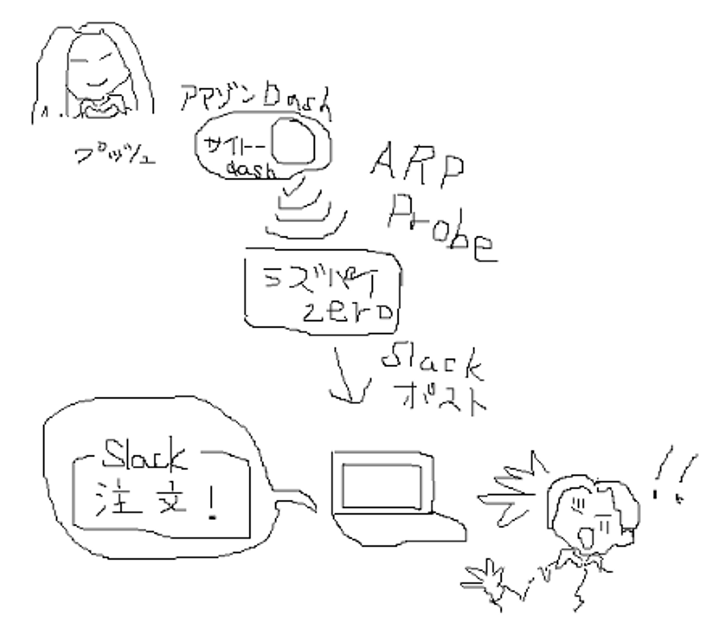 時間とお金を投資した結果、本来のamazon dashボタンよりも一手間も二手間も増えていますが、善意の心なので気にしません。