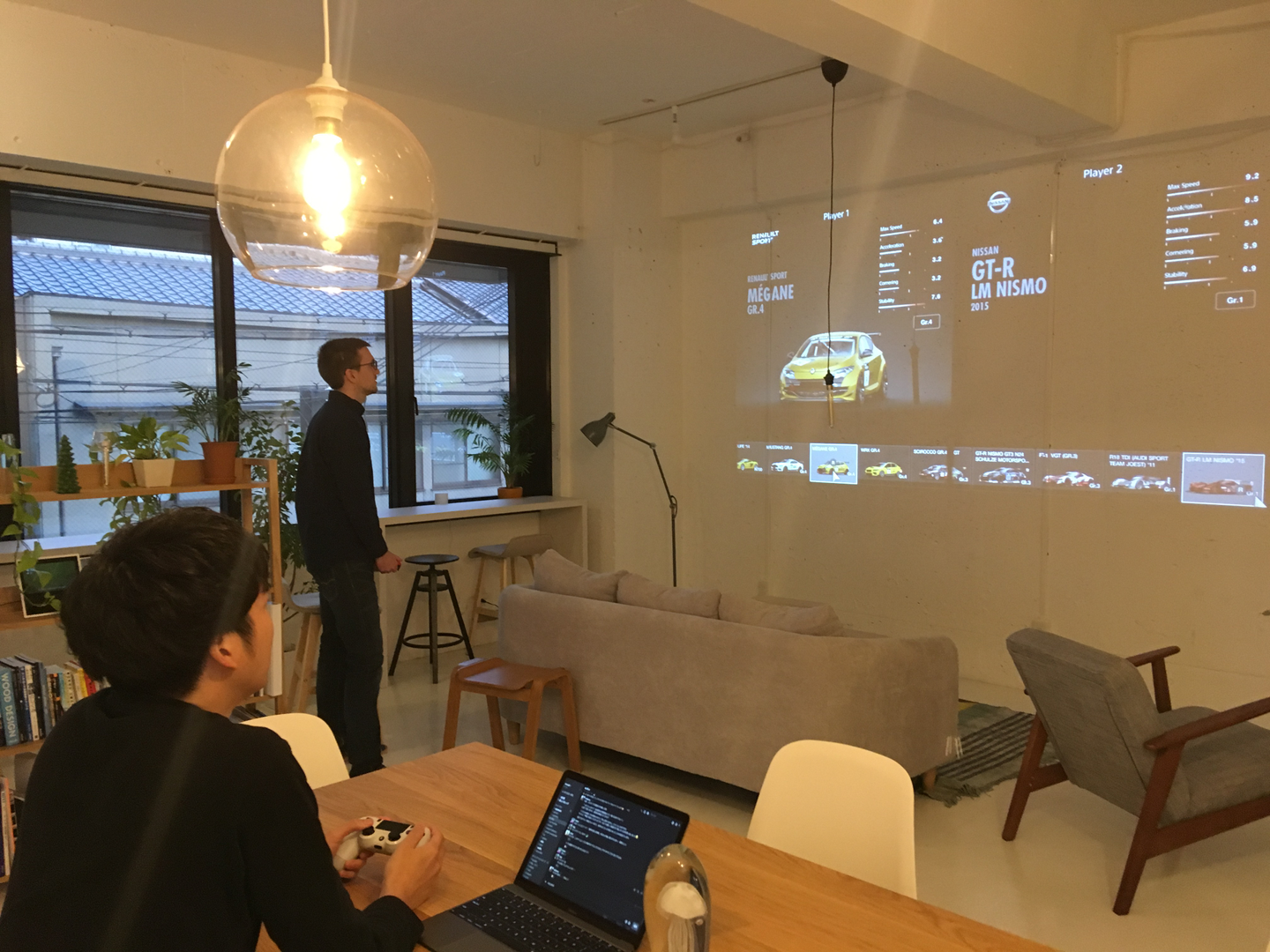 入って右側の壁にはプロジェクターもあり、少し休憩してゲームをすることもできます。