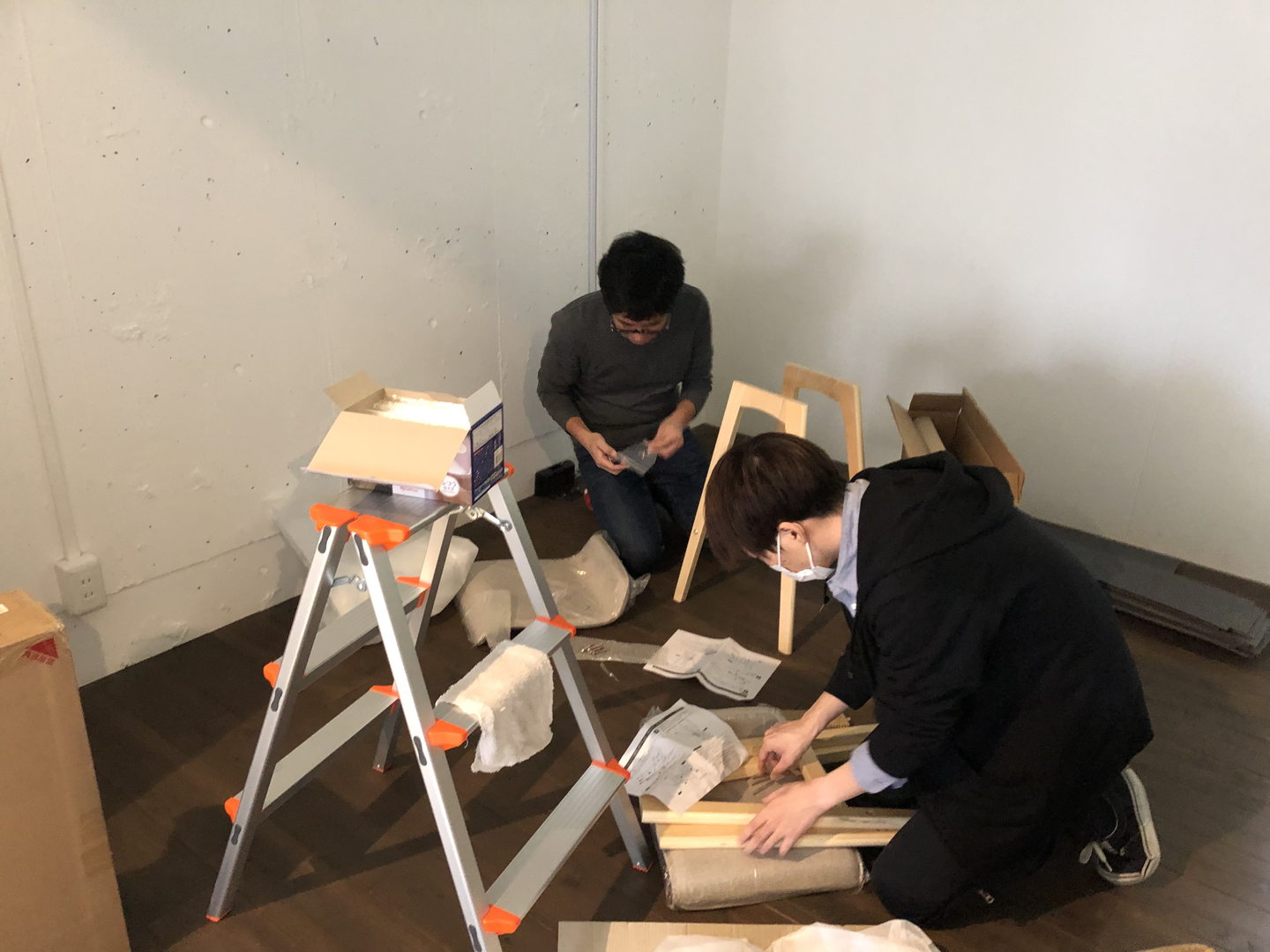 本棚、机、椅子なども移動させ、少しずつ完成に近づいていきます…!