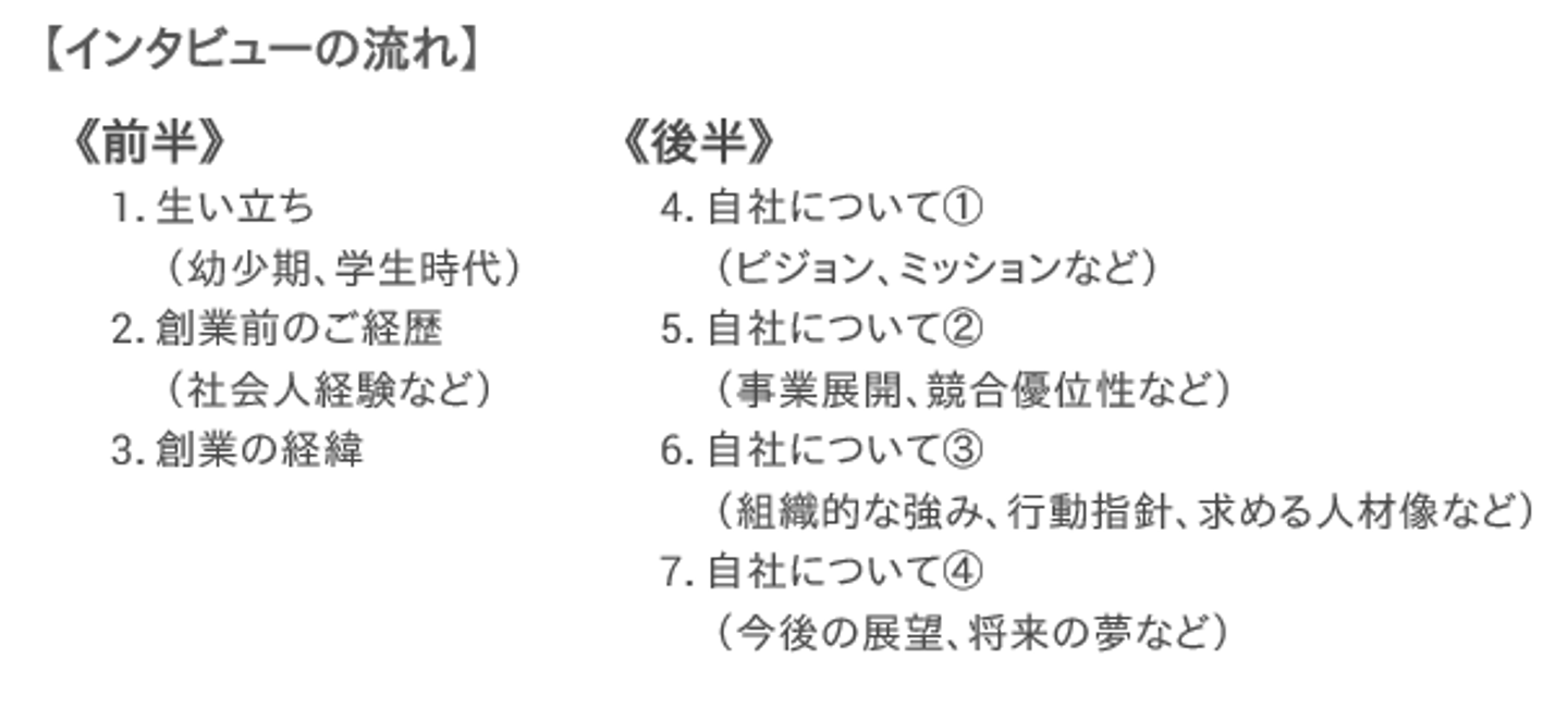 またスタートアップ/ベンチャー企業や中小企業の経営方針や事業特性は、代表取締役の価値観や人柄などが色濃く反映されていることが多いため、弊社では代表インタビュー前半は代表取締役ご自身にフォーカスした構成としています。