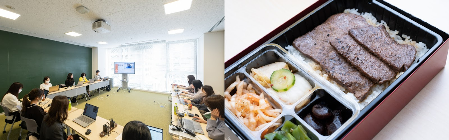 ▲キックオフMTGの昼食は、前期の年間目標を達成したお祝いの豪華焼肉弁当!