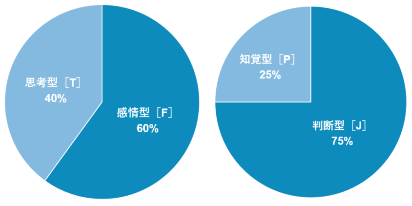 論理的で客観的な観点を重視し、原則や法則に基づいて判断、自分の感情や他人の感情に左右されない「思考型タイプ」よりも、個人的で主観的な観点を重視し、価値観や感情に基づいて判断する「感情型タイプ」が、若干勝る結果となりました!