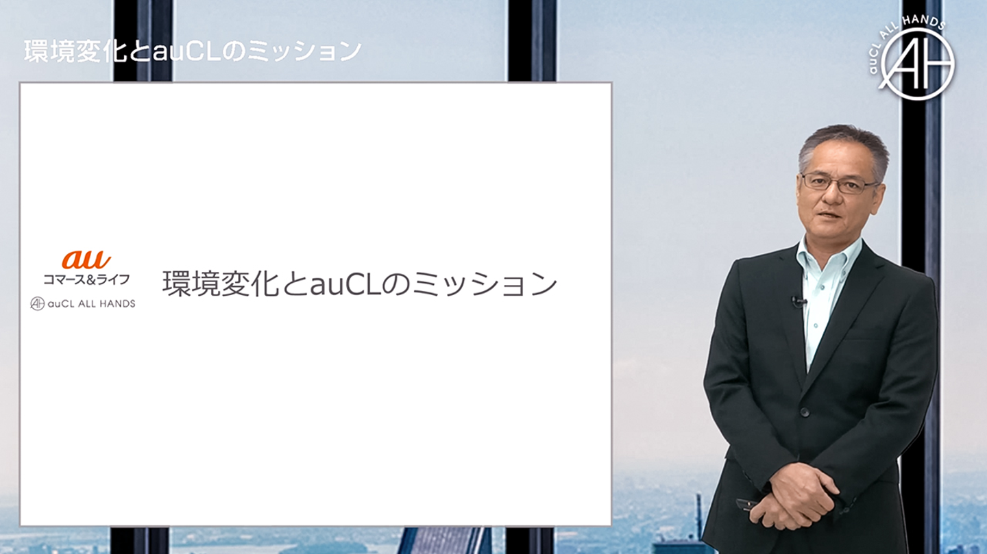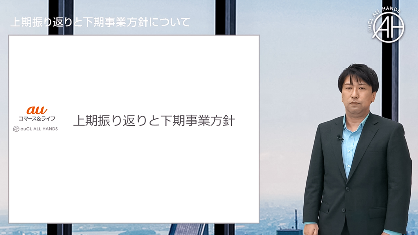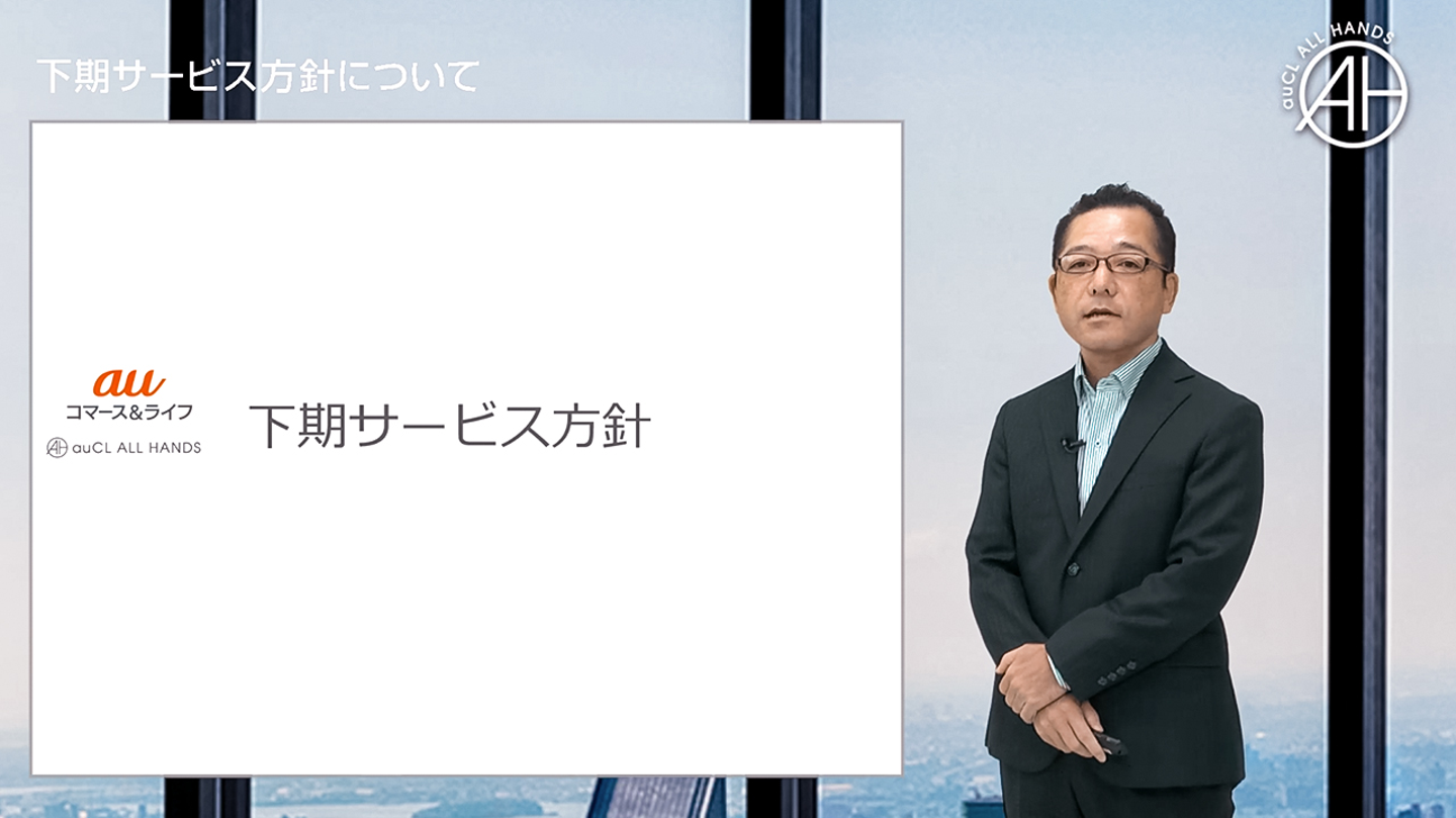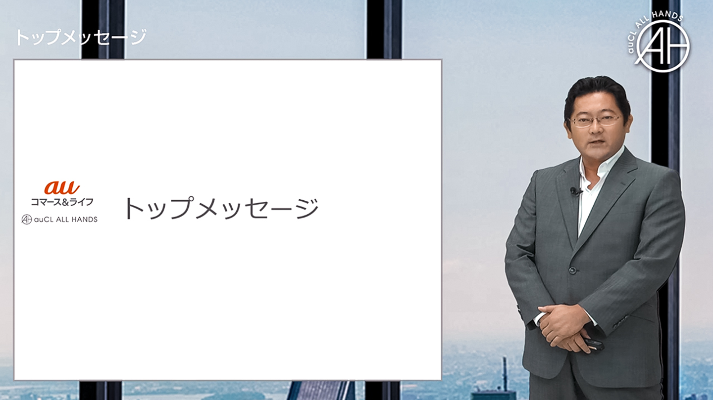 2020年10月16日、auコマース&ライフでは社員に向けた全社会『auCL ALL HANDS』を開催しました。年2回開催されるこの全社会、例年は社員が一同に介して行われますが、今回は新型コロナウイルス感染予防対策のため、オンライン/ライブストリーミング配信での実施となりました。
