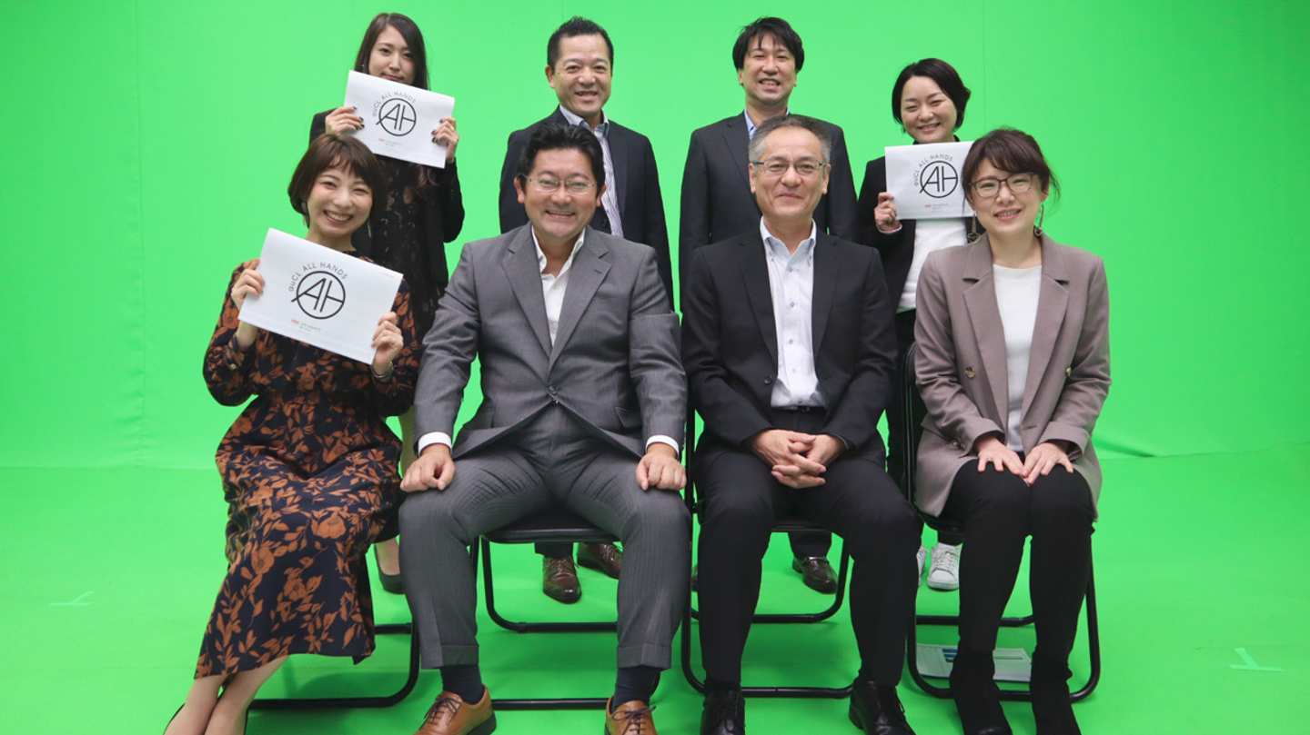 年2回開催される全社会を『auCL ALL HANDS』と呼んでいます。auCL半期の事業の振り返りや今後のビジョン共有、半期活躍した社員の表彰などが行われるこの会は、合併1年目の2019年には4月と9月に全社員を集めて開催されました。ところが2期目に入った2020年4月、上期全社会の開催は新型コロナウイルスの影響で急遽取りやめに。八津川社長から中長期戦略と2020年度方針について、また鴨志田副社長からはサービス開発方針について、プレゼン動画の共有のみとなっていましたが、今回はそこからさらにアップデートし、情報共有だけでなく社員の参加感・一体感が生まれるような会をコンセプトに開催されました。
