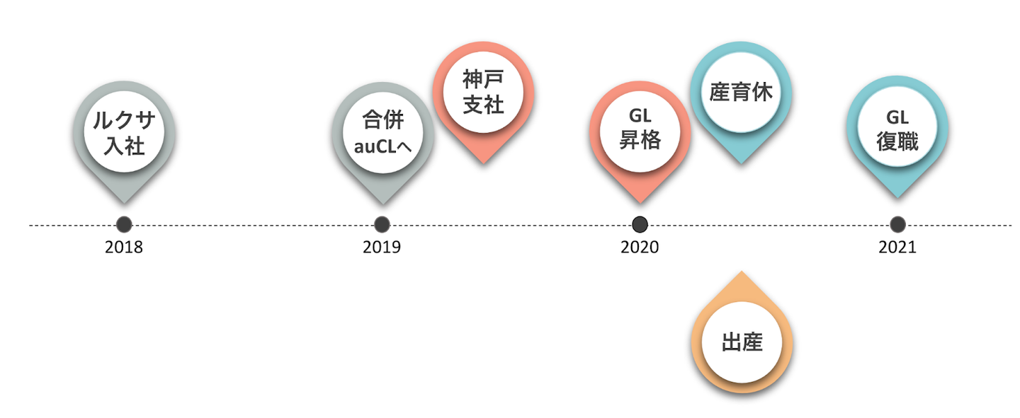 植田さんの年表 ー実は植田さんはauコマース&ライフ初の育児中の女性GL就任でした