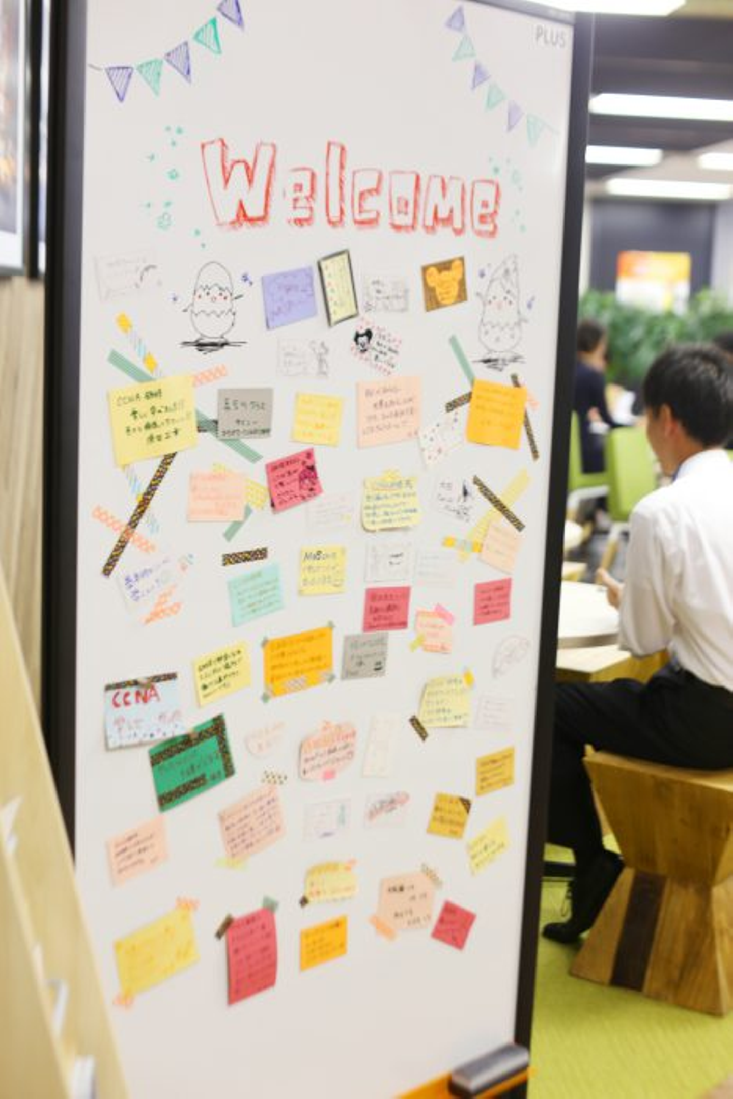 (取材でお伺いした大崎 光村研修センターエントランスのウェルカムボードには、研修修了された方々の喜びの声がたくさん紹介されていました。)